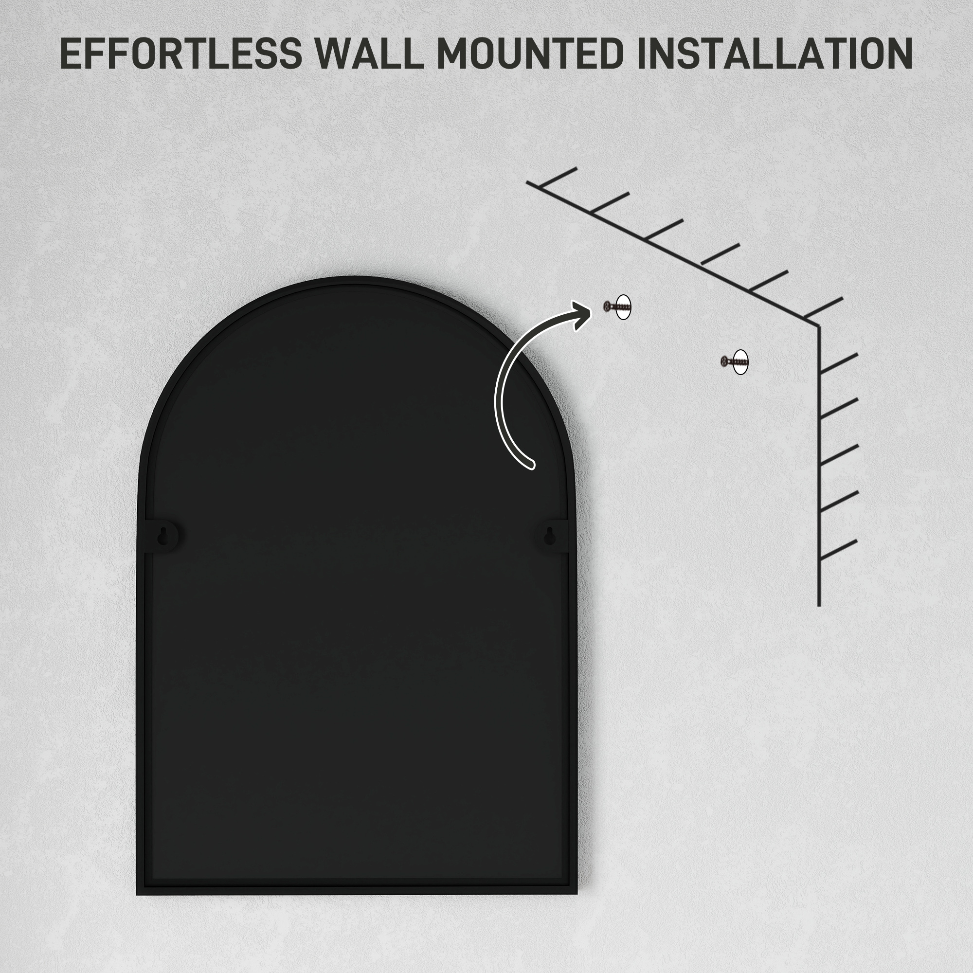 Elegant reflection, for your bathroom and beyond with this HOMCOM 50 x 70cm arched mirror. See yourself clearly with the HD glass, which is kept safe with the shatter-resistant film. It's protected with the powder coated metal frame, complete with included mounting accessories to fix easily to the wall of your choice.
