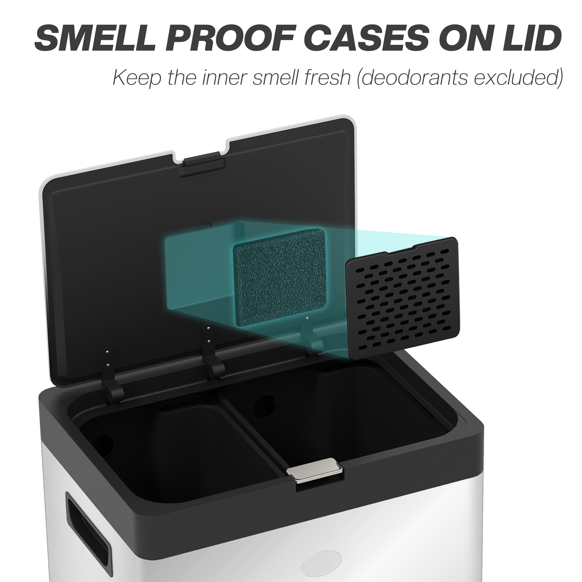 - Deodoriser holder in the lid minimise unpleasant odours