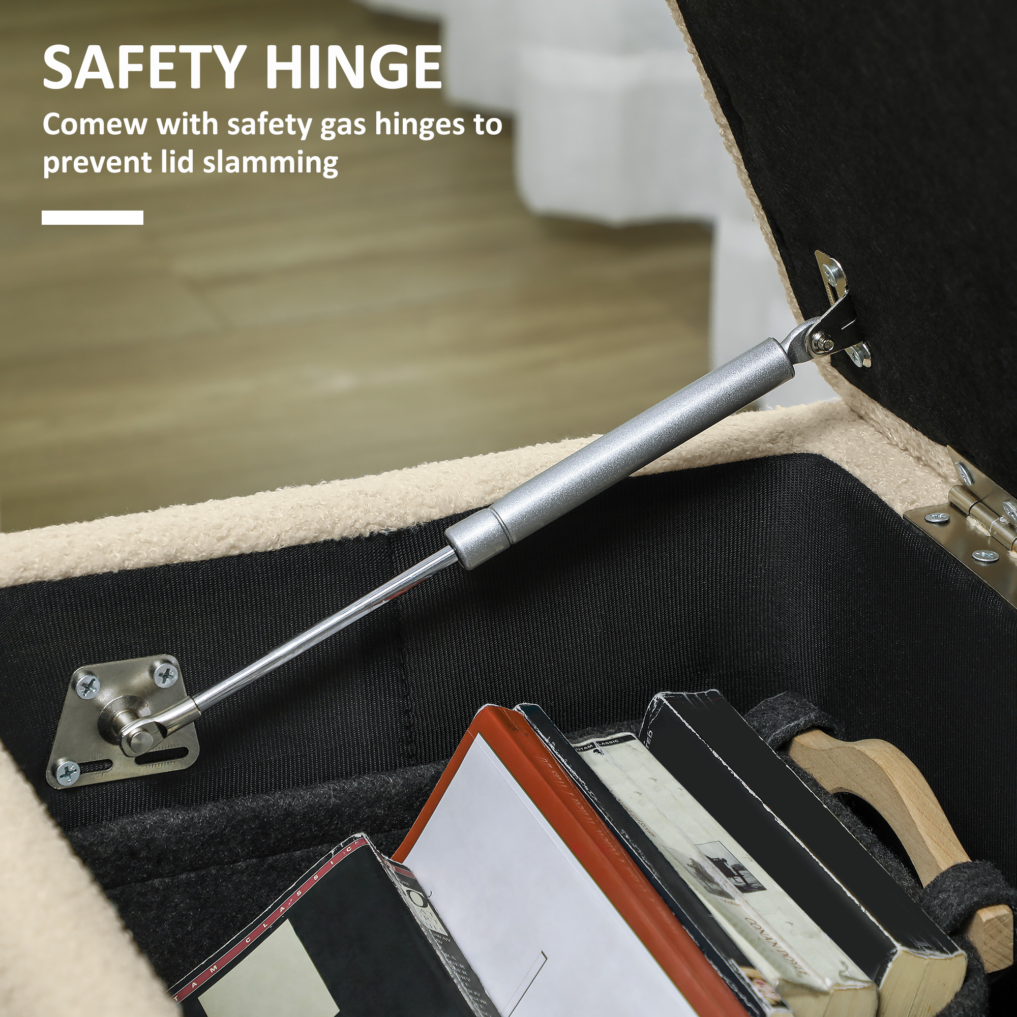 Storage, with a seat to rest on occasionally - this HOMCOM ottoman is a handy double-duty piece for the bedroom, hallway, office and more. Open the lid to reveal a 90 x 32cm space, great for small furnishings. Four wooden legs for support when loaded and when you're seated. A simple and stylish design, this end of bed storage bench works well with your current furniture.