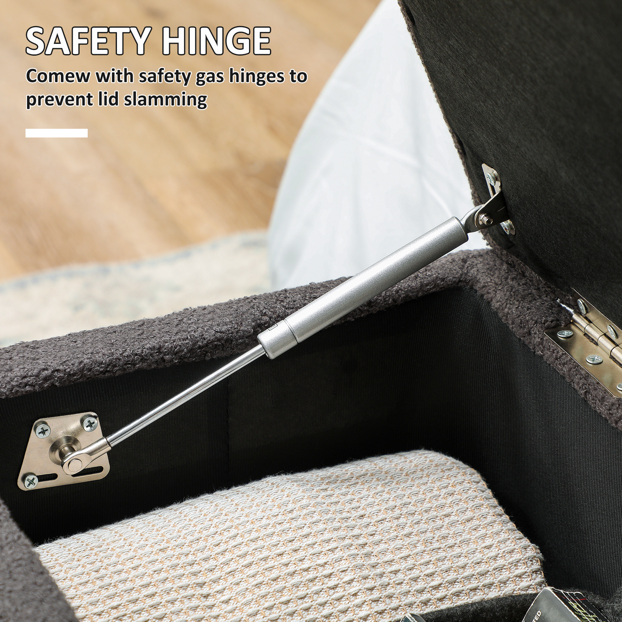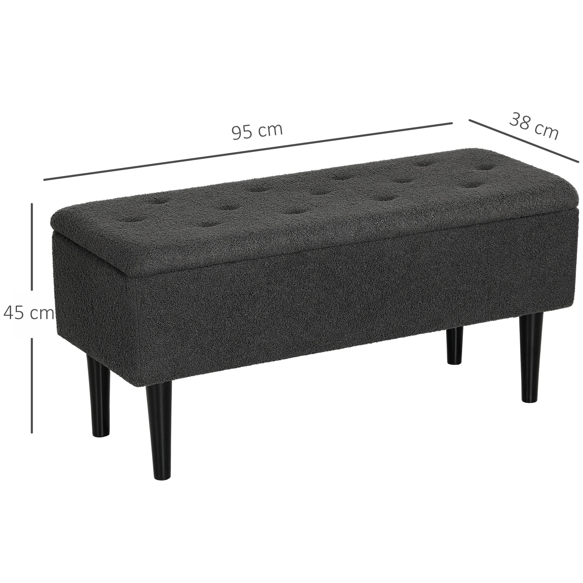 Storage, with a seat to rest on occasionally - this HOMCOM ottoman is a handy double-duty piece for the bedroom, hallway, office and more. Open the lid to reveal a 90 x 32cm space, great for small furnishings. Four wooden legs for support when loaded and when you're seated. A simple and stylish design, this end of bed storage bench works well with your current furniture.