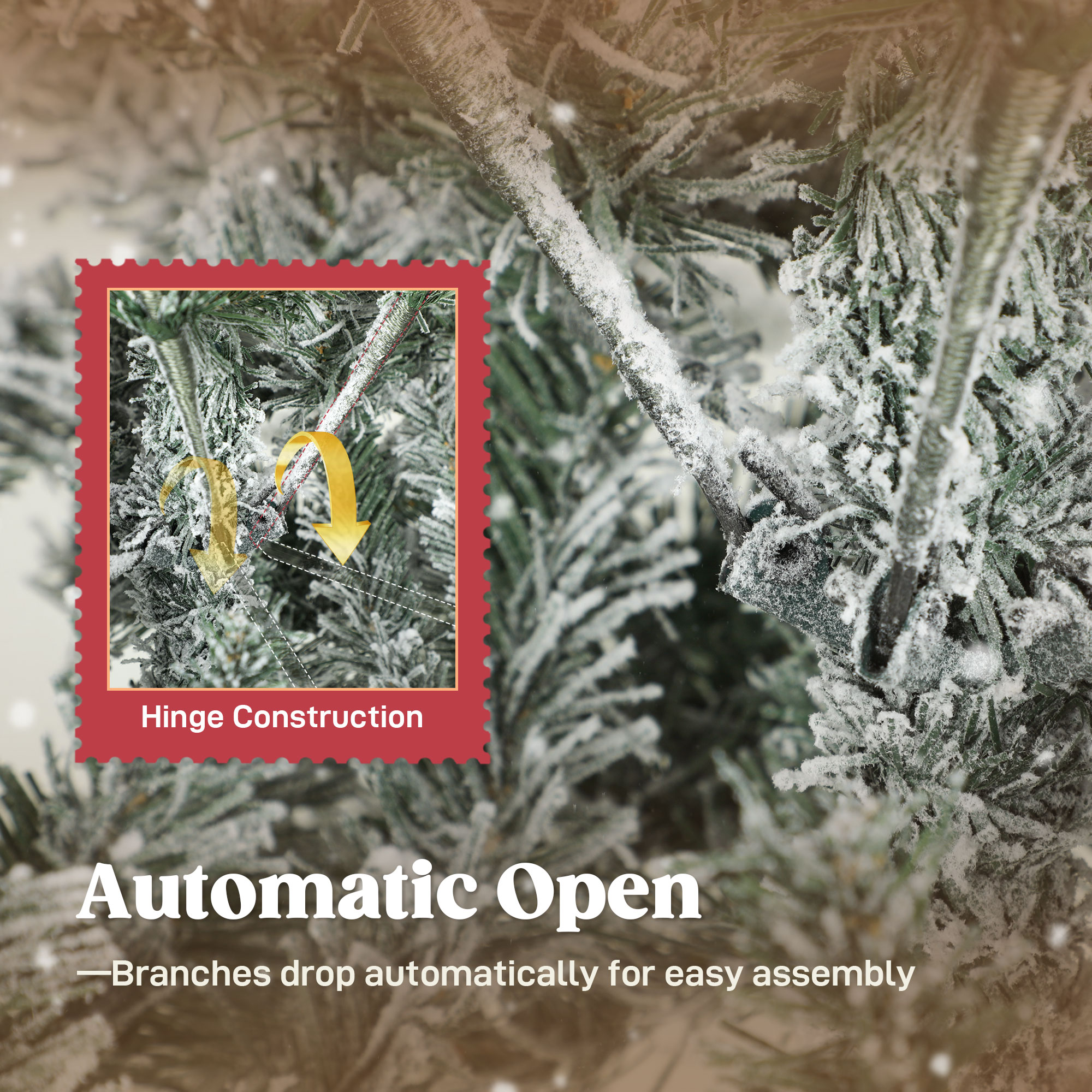 - Auto-open hinged branches and section design allow quick assembly