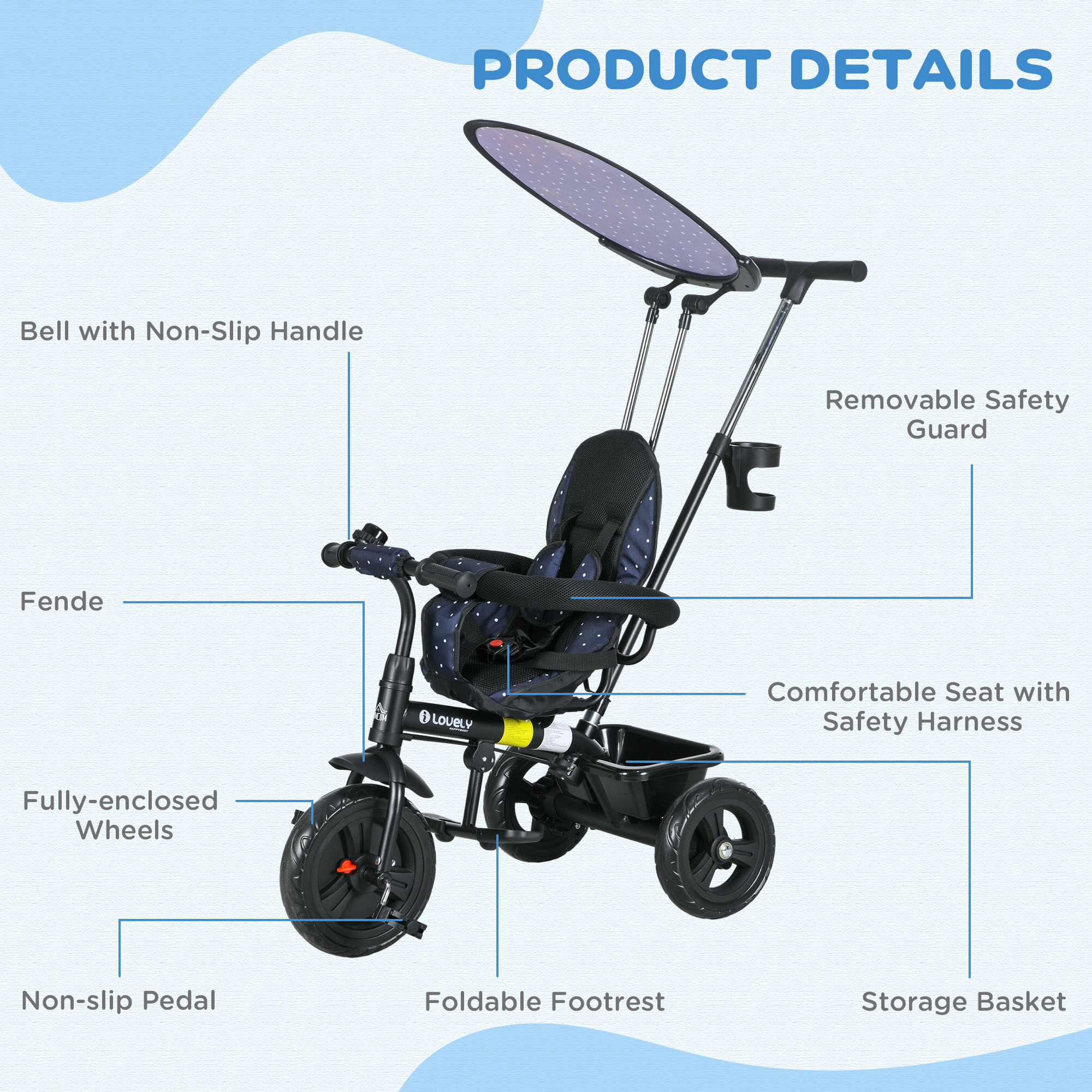 Unleash endless fun and adventure with the Qaba kids trike! This toddler trike transforms from a toddler push bike to a bike stroller in a breeze, offering versatility for your growing child. It is suitable for little explorers, it's a great baby bike to foster independence while ensuring a safe ride. Dive into the joy of mobility and watch your little baby pedal away on their new favourite toddler tricycle.