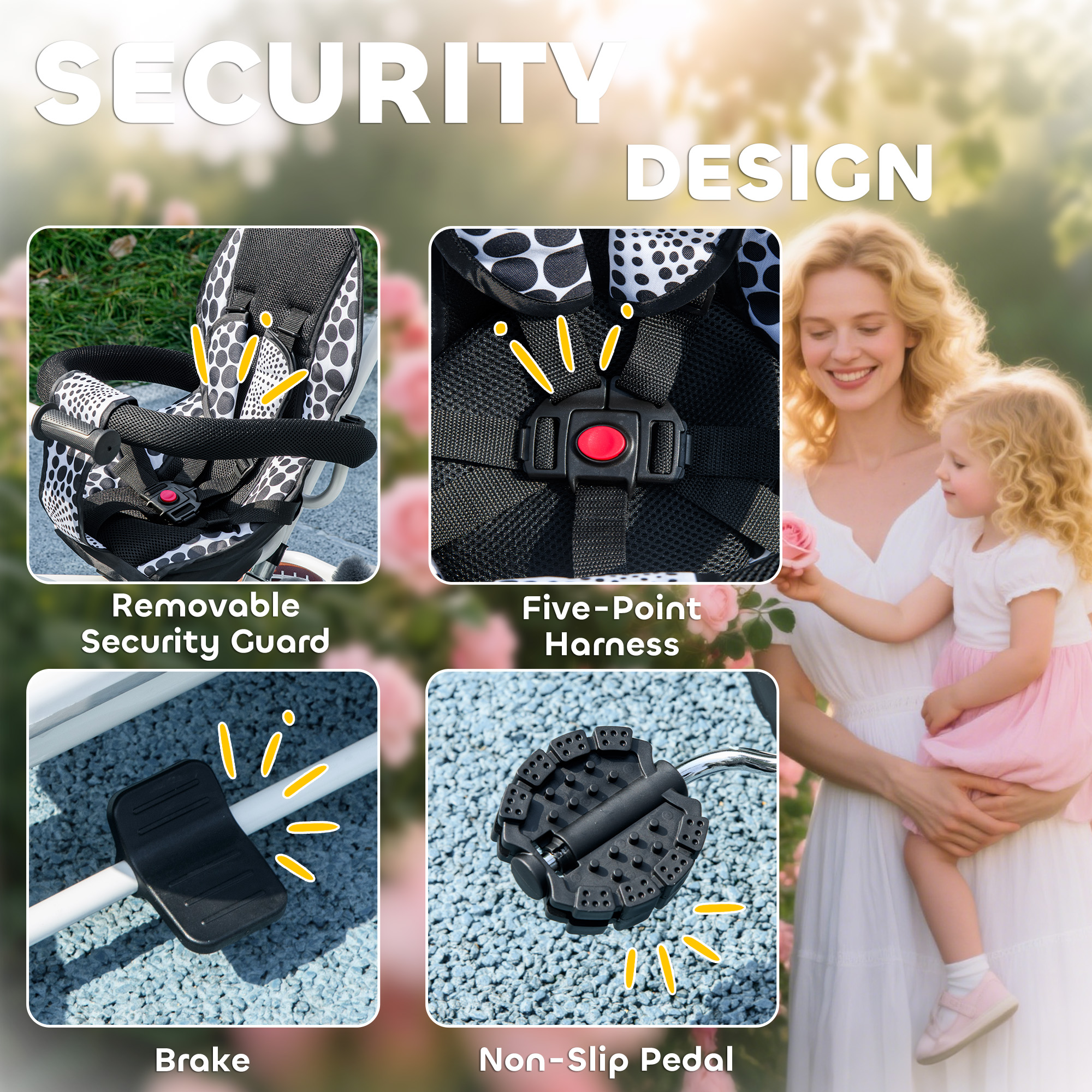 Unleash endless fun and adventure with the Qaba kids trike! This toddler trike transforms from a toddler push bike to a bike stroller in a breeze, offering versatility for your growing child. It is suitable for little explorers, it's a great baby bike to foster independence while ensuring a safe ride. Dive into the joy of mobility and watch your little baby pedal away on their new favourite toddler tricycle.
