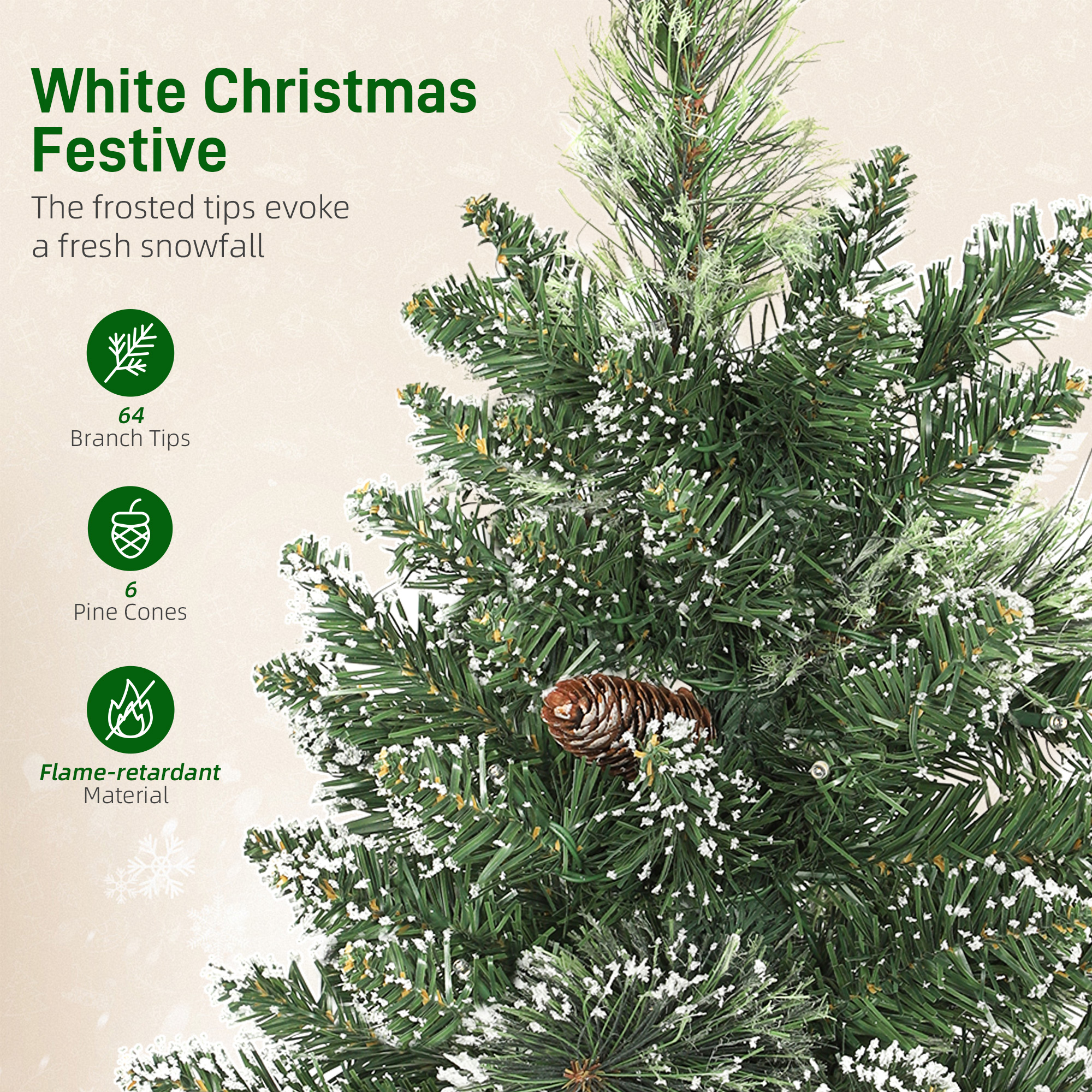 Light up your festive spirits with the HOMCOM Small Christmas Tree! Pre-lit with 35 warm white LEDs and a convenient timer, it offers a cosy glow with zero fuss. Adorned with snow-flocked branches and pine cones, it captures a winter wonderland vibe. Safety is paramount with flame-retardant branches, ready to brighten your space securely. Great for adding a touch of Christmas charm to any small indoor area!