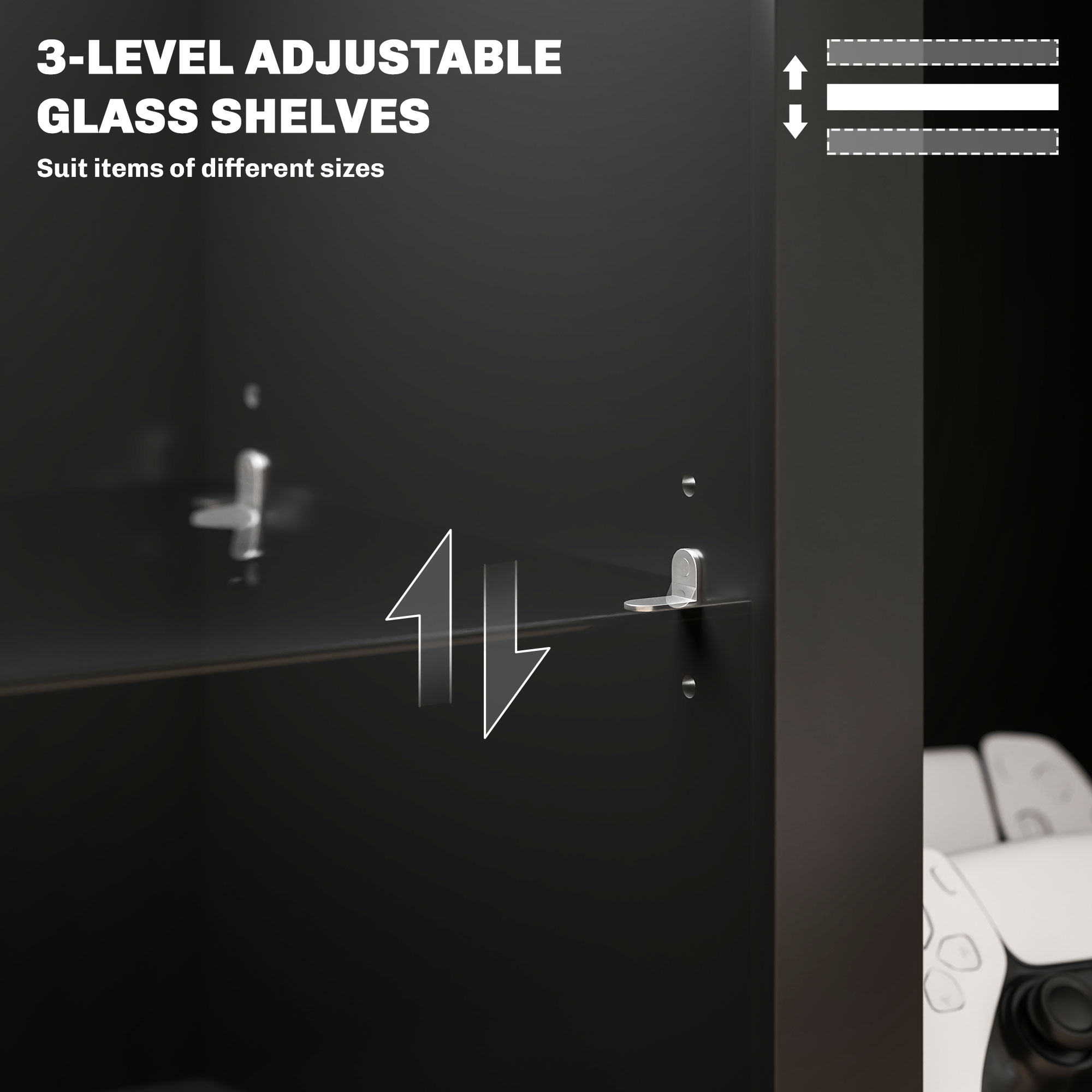 - Materials: Particleboard, Tempered Glass