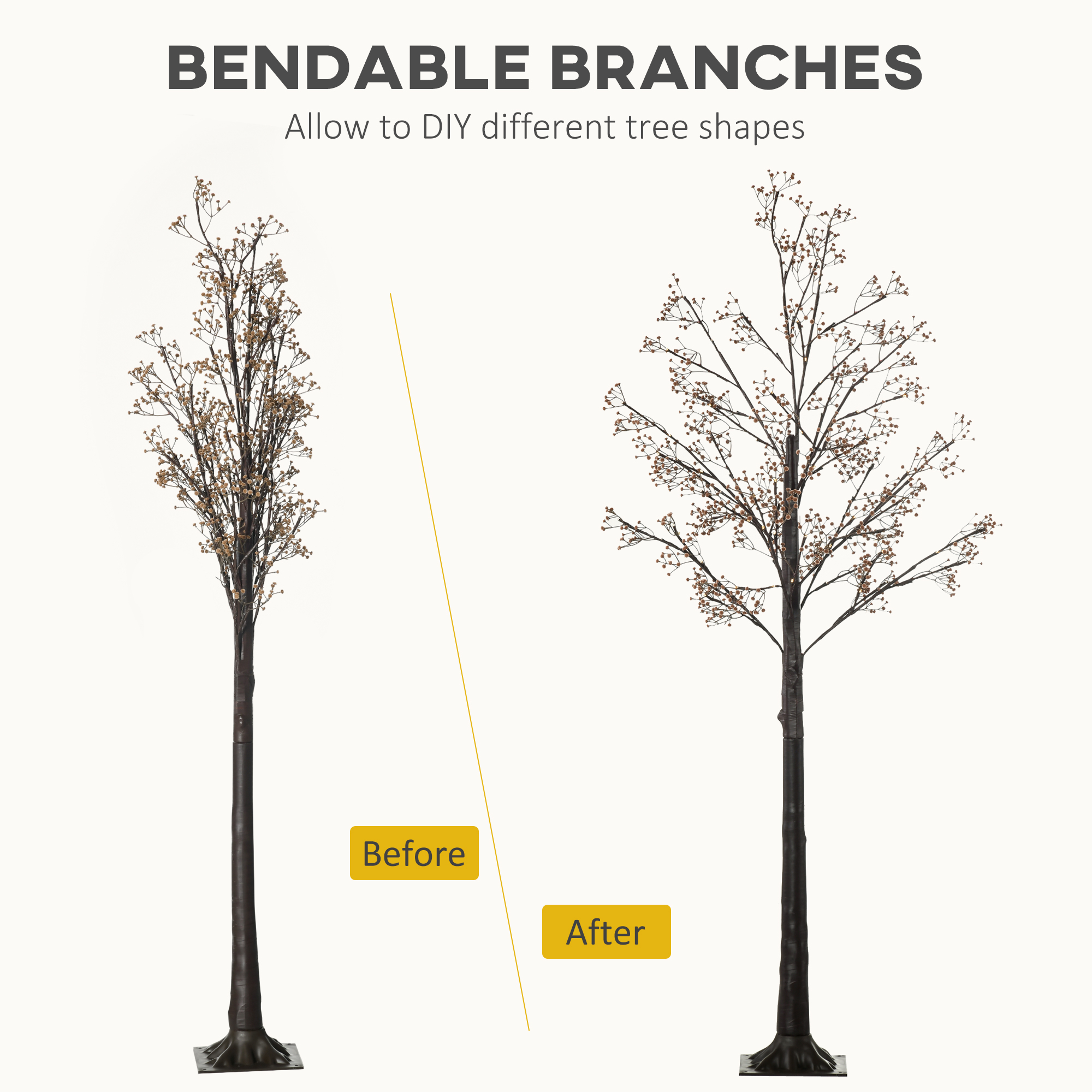 - The bendable branches allow for DIY tree shape