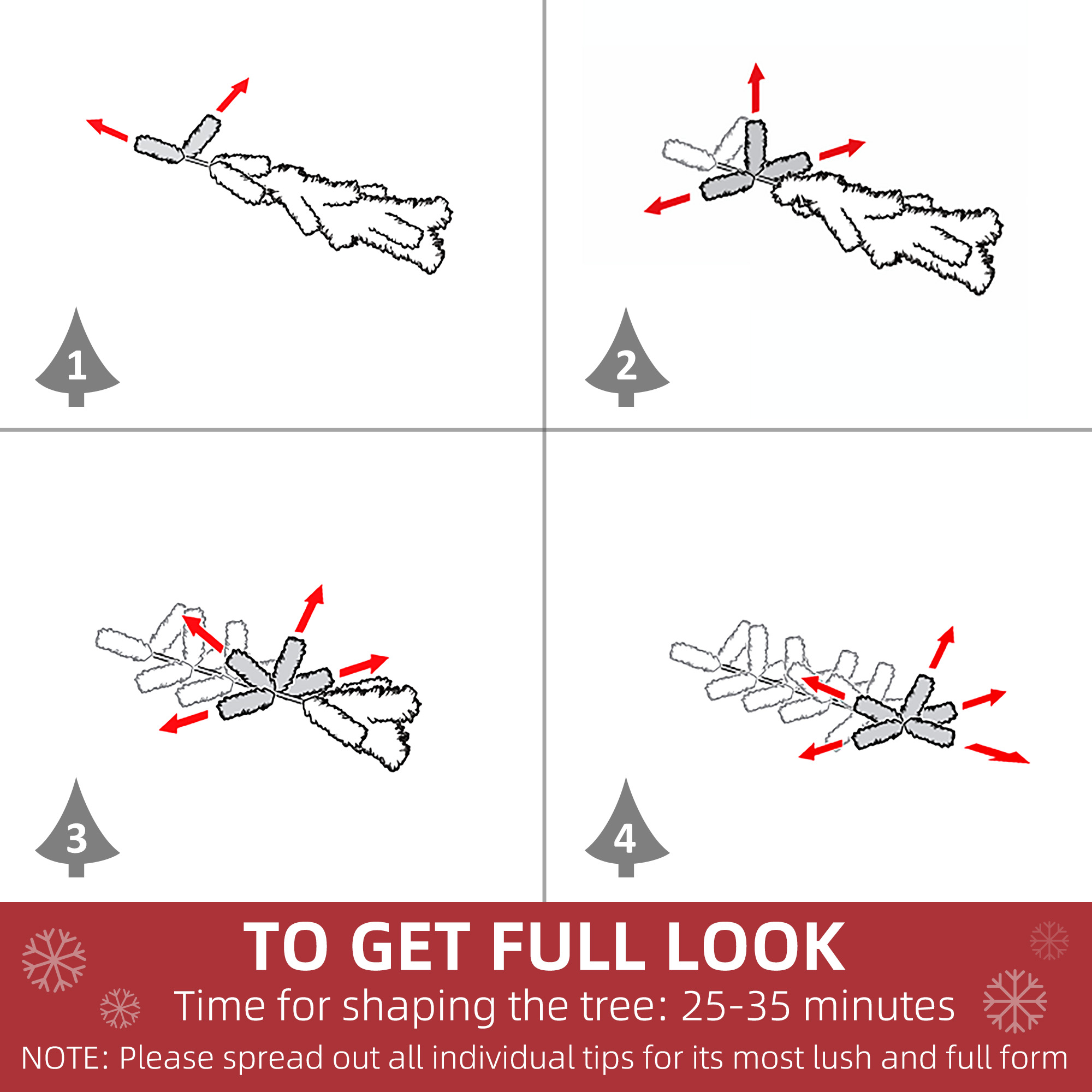 - In order to get a full appearance, please spread out all individual tips to get the best possible look from the tree, suggest you to take 25-35 minutes to shape the tree