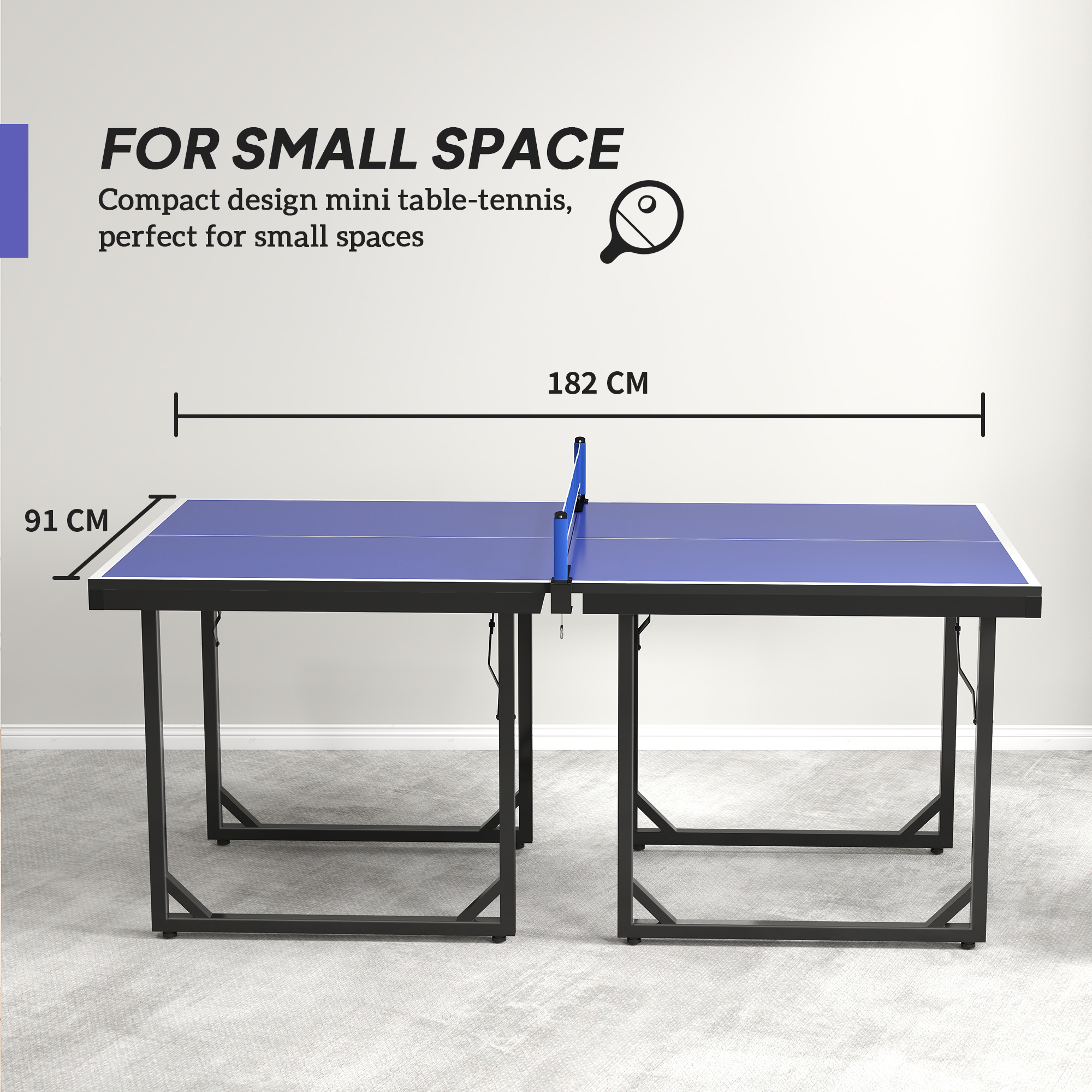 The HOMCOM Ping Pong Table is a great solution for ping pong enthusiasts with limited space. Featuring a regulation-height design (76 cm) and a generous 182 x 91 cm playing surface, it offers an authentic experience in a compact format. Each half folds down into a square shape that can be used separately as a game table or for general use, such as board games, cards or crafts. Whether you're taking a quick break at the office or entertaining guests, this table brings versatile fun for all ages.