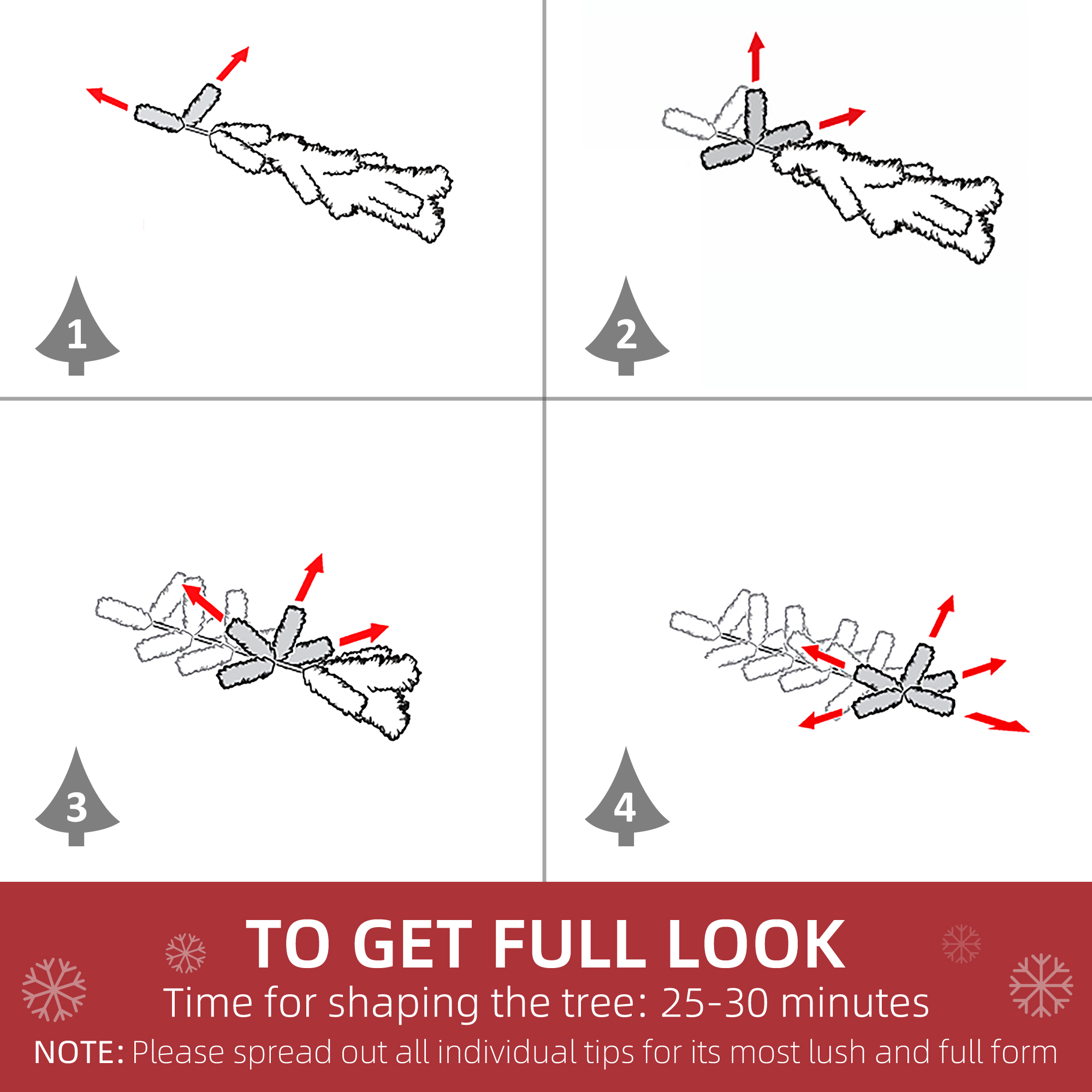 • Recommended to spend 25-30 minutes fluffing the branches once pieces are fixed together