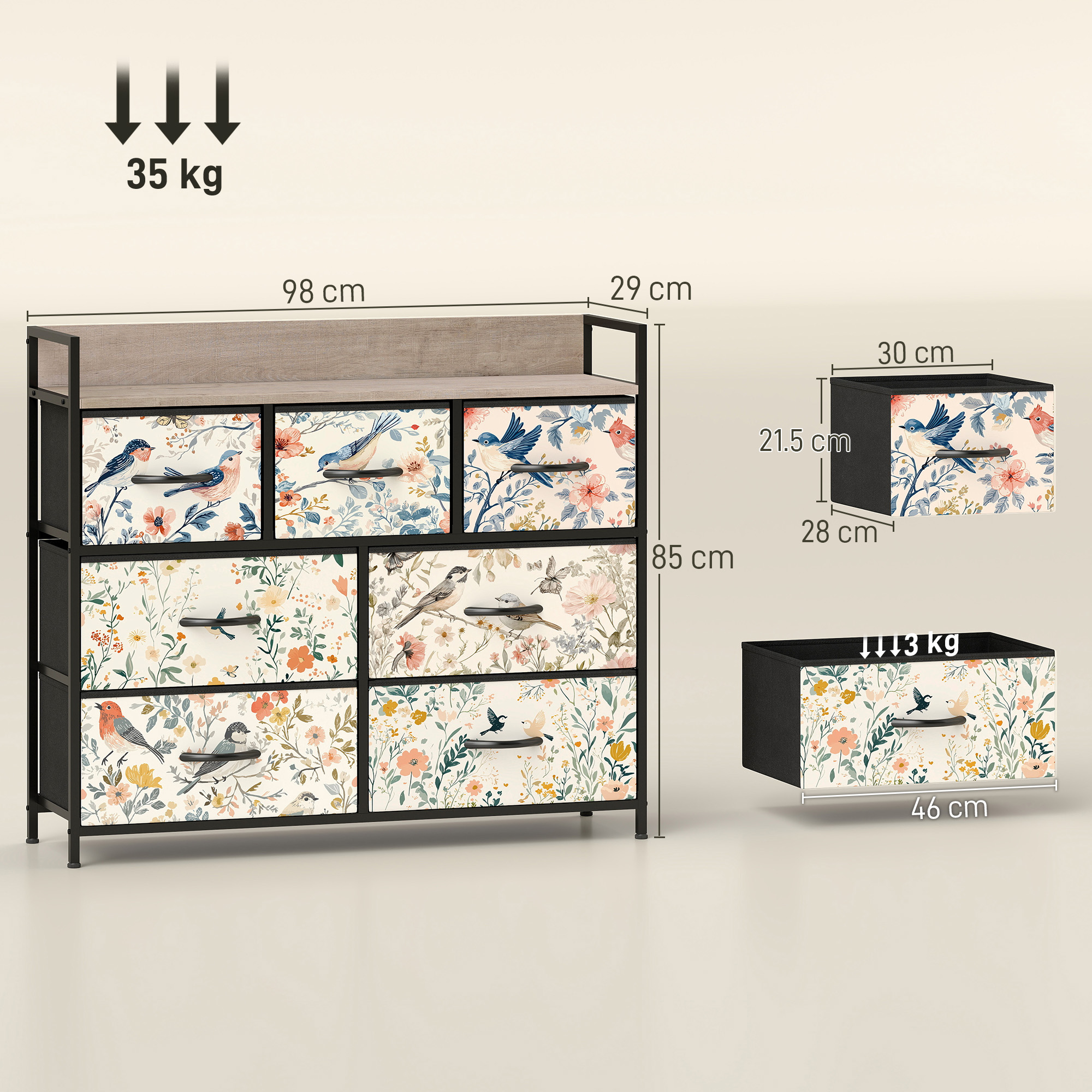 Transform your space with the HOMCOM chest of drawers, where style meets functionality! Adorned with exquisite patterns on each drawer panel, this bedroom drawers add a touch of elegance to any room. With seven fabric drawers that are both removable and foldable, organising has never been easier. Great for bedrooms, living rooms, or home offices to keep your essentials tidy.