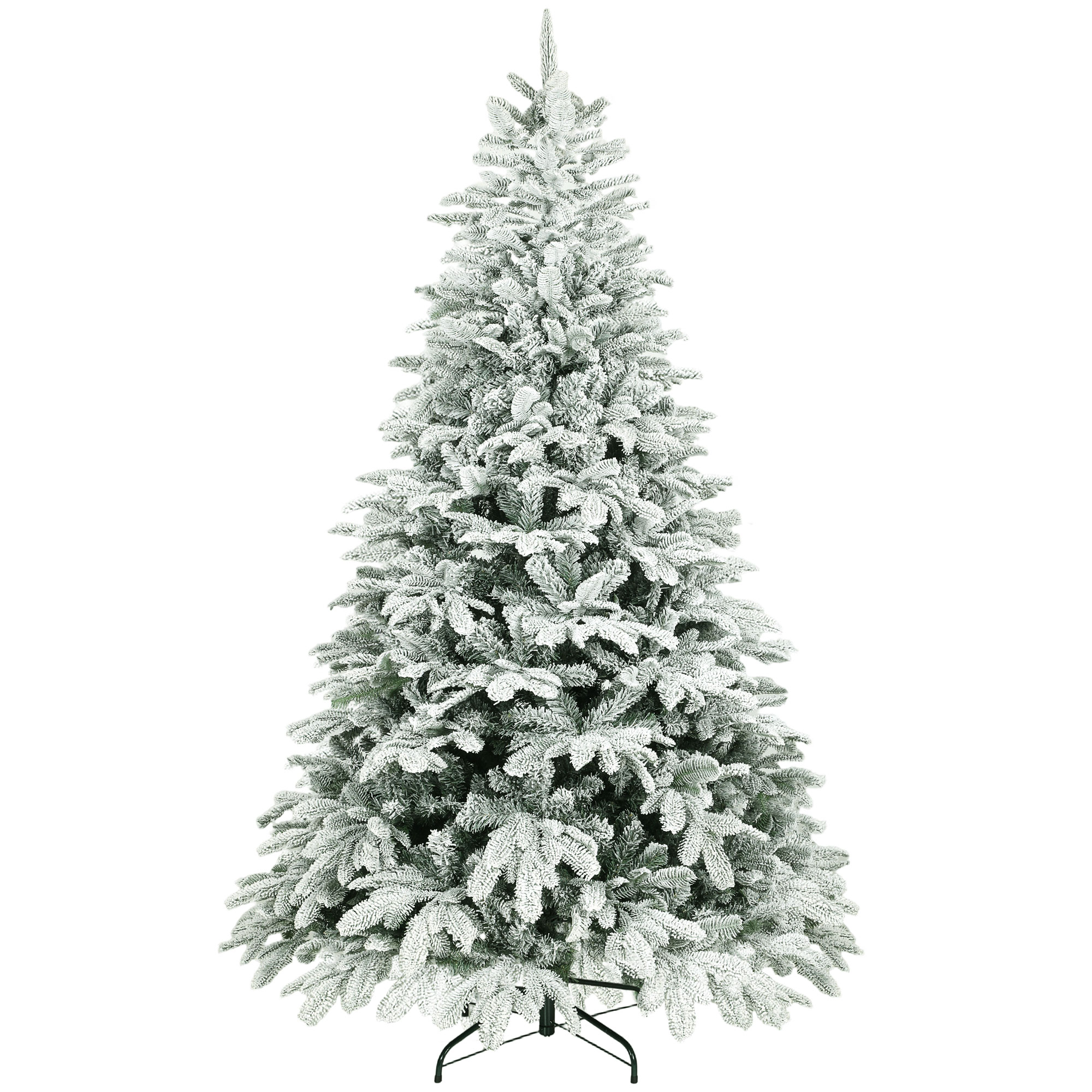 Step into a winter wonderland with the HOMCOM Christmas Tree, featuring 1867 snow-kissed branches for a truly magical festive feel. Most branches are carefully molded to replicate the natural, enchanting look of a real tree. Standing 210 cm tall, it transforms any room into a cosy festive retreat, safely crafted from flame-retardant materials and supported by a robust metal base.