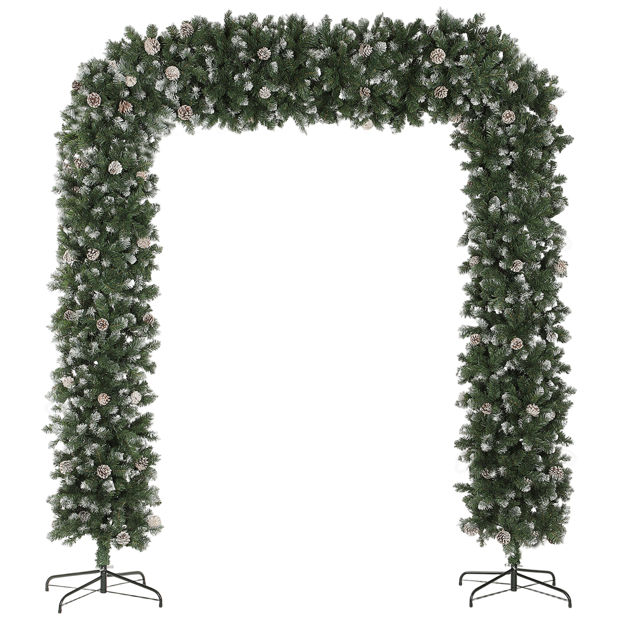 Step into the festive season with the HOMCOM Christmas Tree Arch. Its elegant arch design and 2100 tips with snow-dusted finish and 96 pinecones offer a lush, realistic gateway to Christmas cheer. Flame-retardant materials and a strong metal base ensure safety and stability, enhancing any indoor doorway with its charming presence.