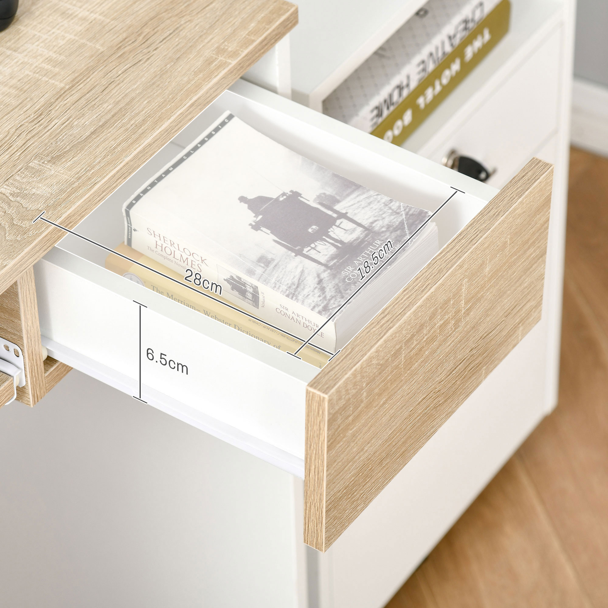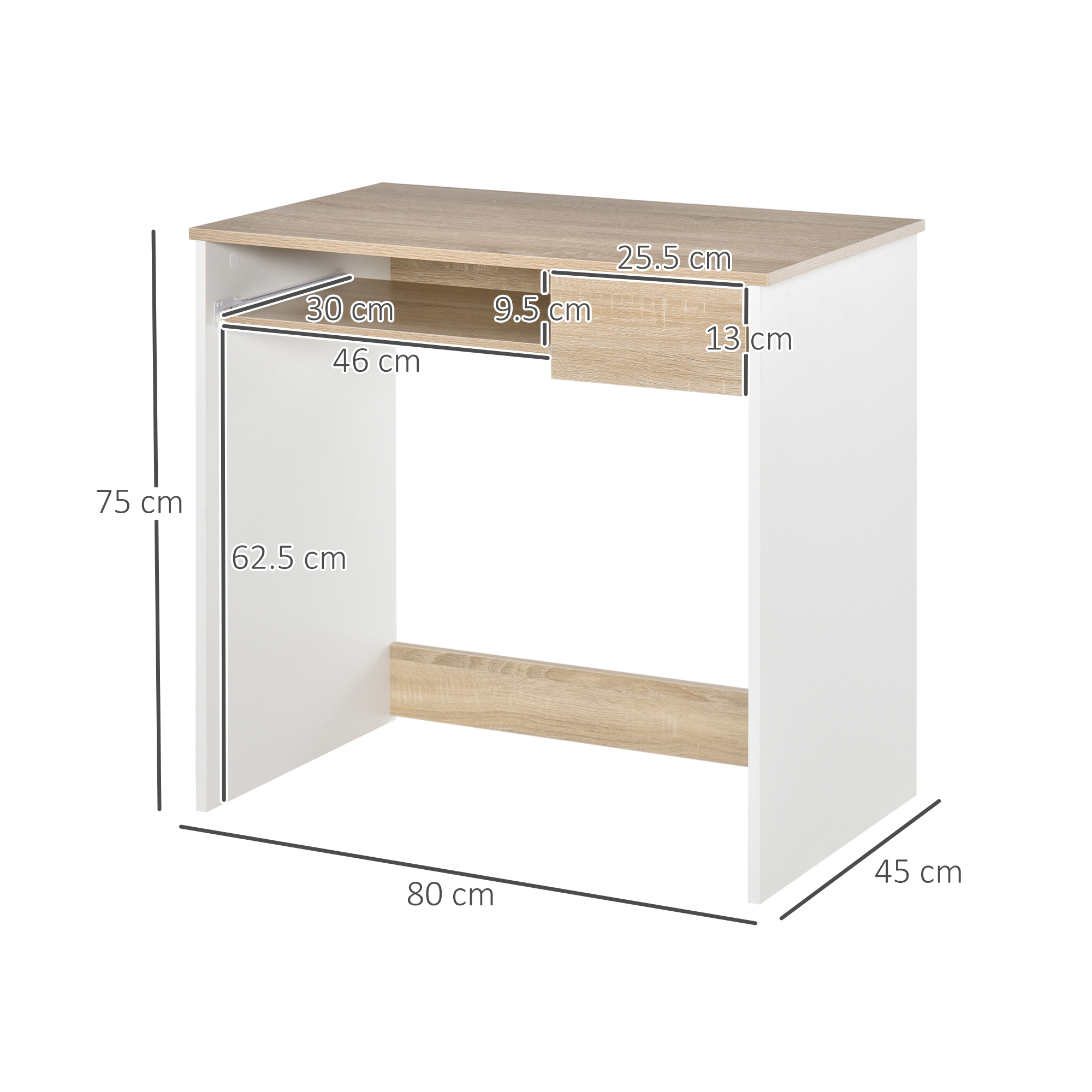 Efficiently save space with this computer desk from HOMCOM. Featuring a keyboard tray and a drawer, it saves a lot of desktop space. Constructed of particle board with oak surface, it's easy to maintain and brings you the atmosphere of nature. Its contemporary look will blend beautifully into any style decor. It's a great choice for you to have this desk in your study, office, or bedroom to enrich your furniture while saving space!