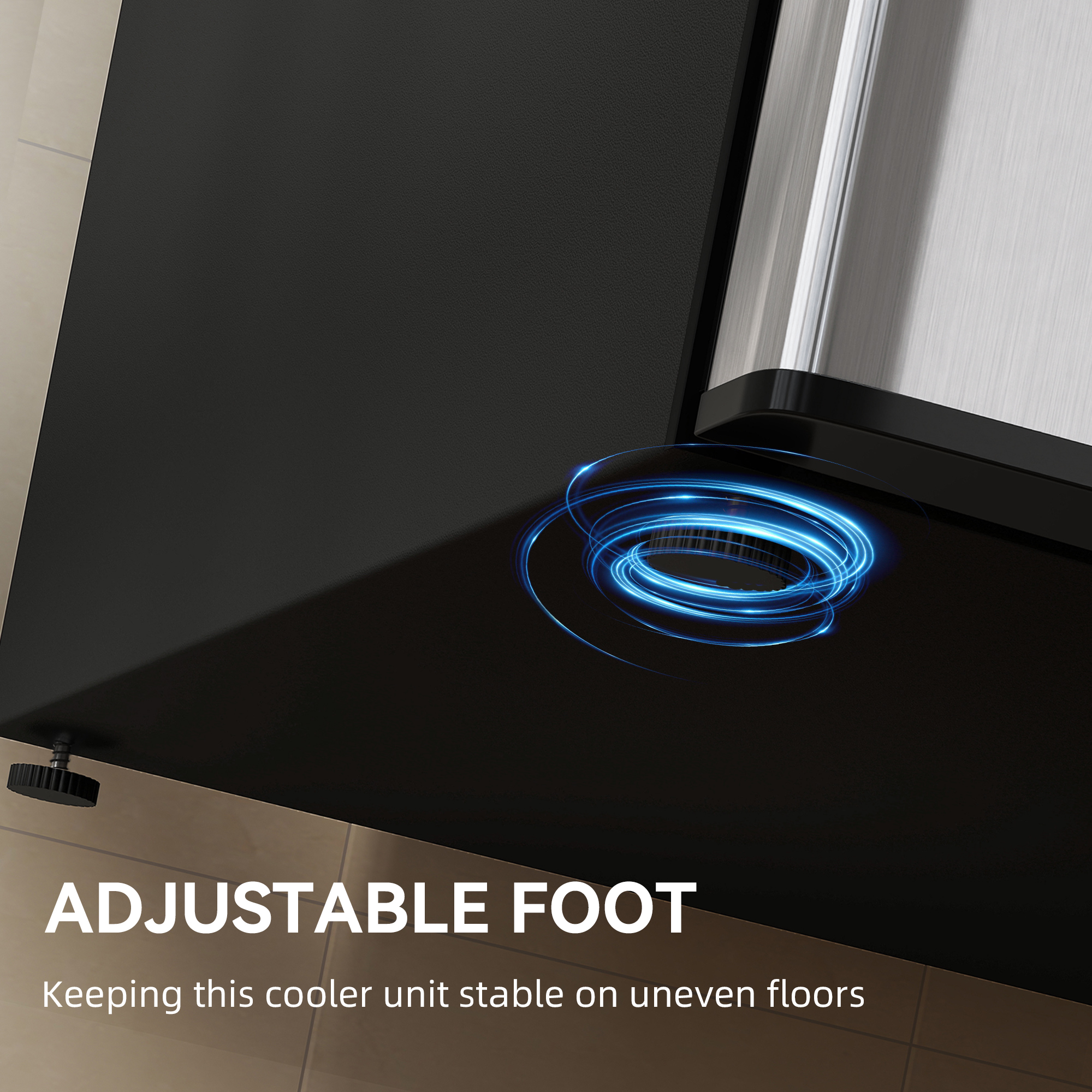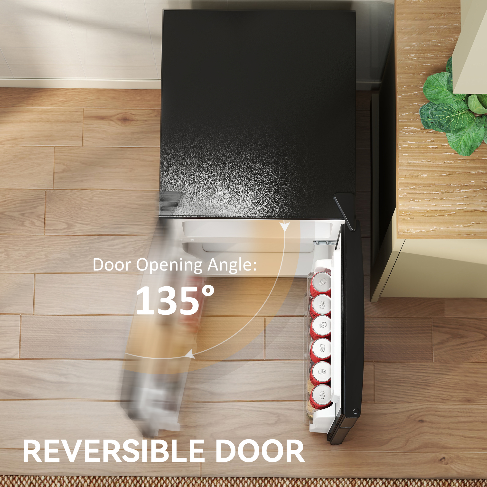 Even small spaces can accommodate fresh food with this HOMCOM under counter fridge freezer. Combining a 25L upper freezer and 63L lower fridge, you can safely store plenty of food and drinks. With two removable shelves, a crisper drawer, door racks and reversible doors, you have full control over how you use this fridge. Low-power and quiet under counter fridge — efficient and unobtrusive for any room.