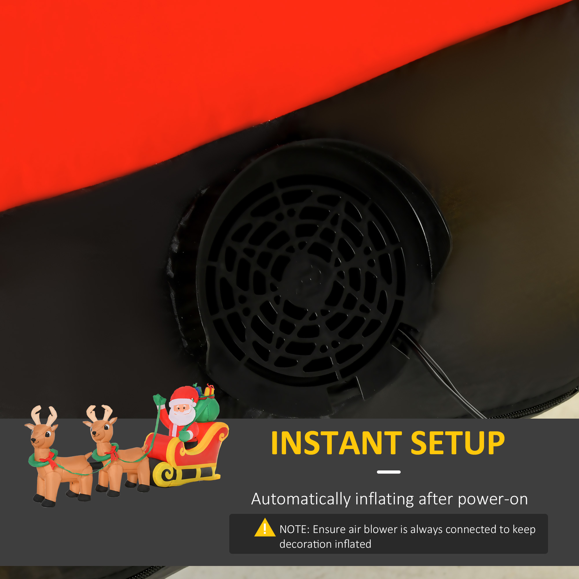 - 1: Ensure air blower is always connected to keep decoration inflated