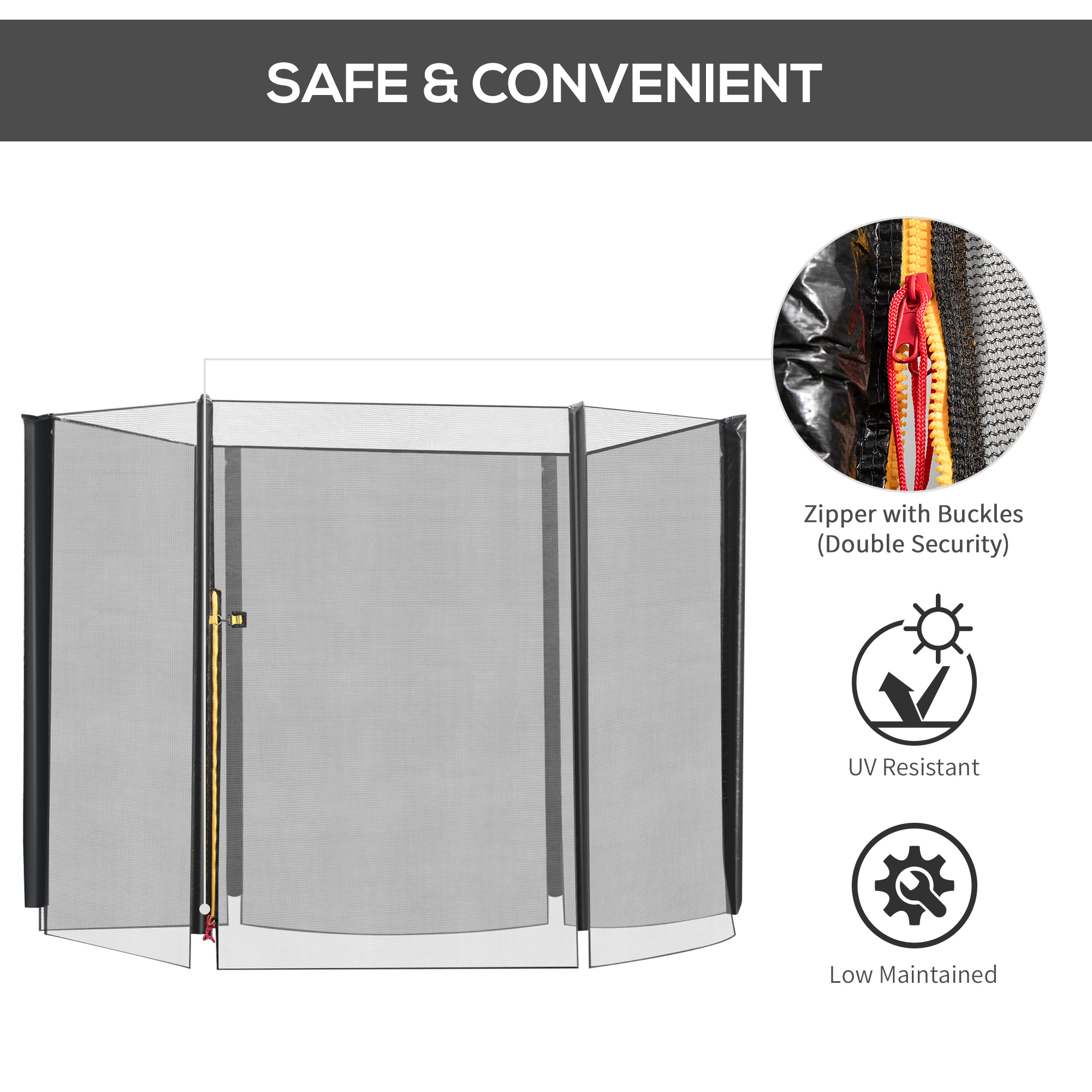 - Height of the net: 165cm (Suitable for 8ft. trampoline)