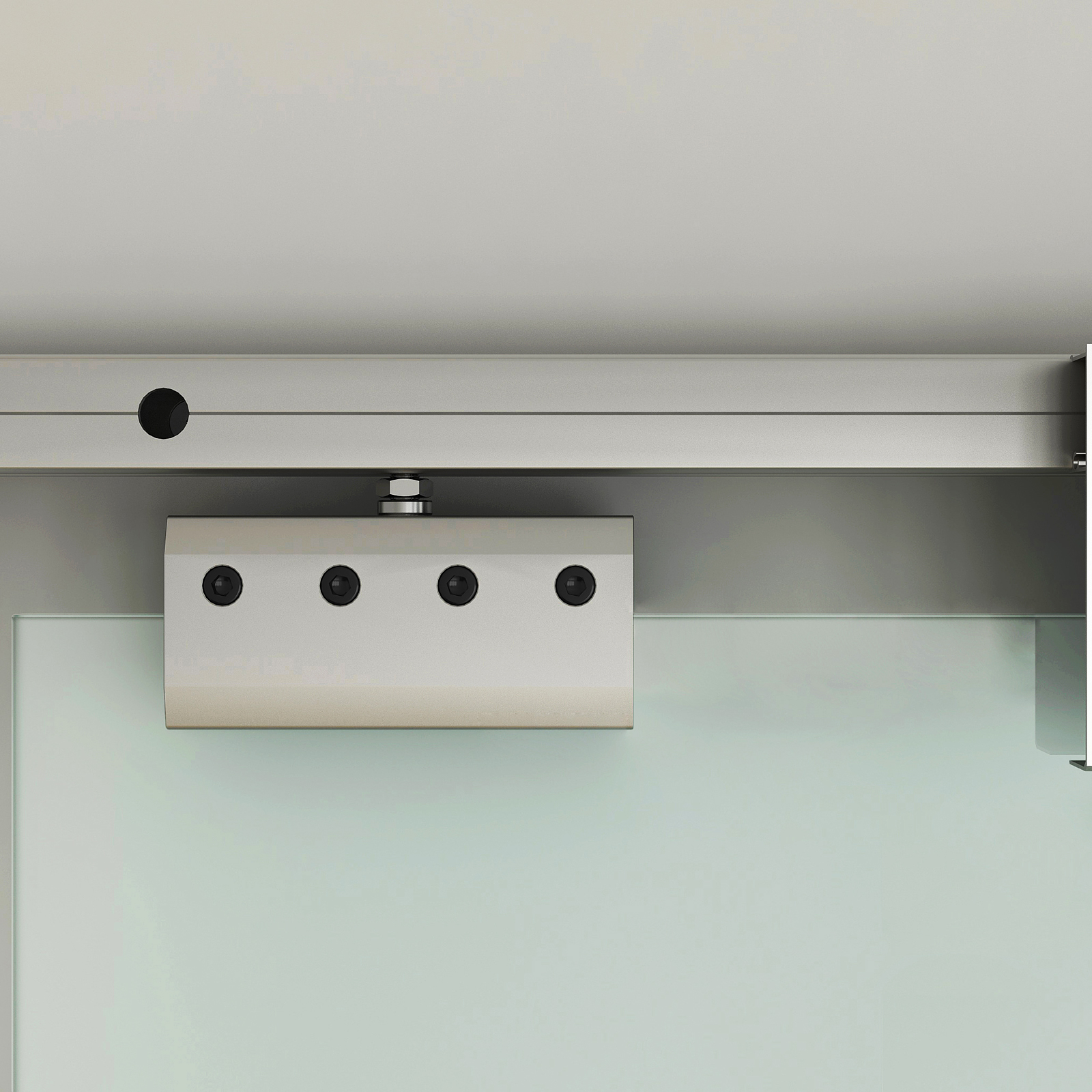 - Heavy duty aluminium rails for smooth and safe rolling of glass door