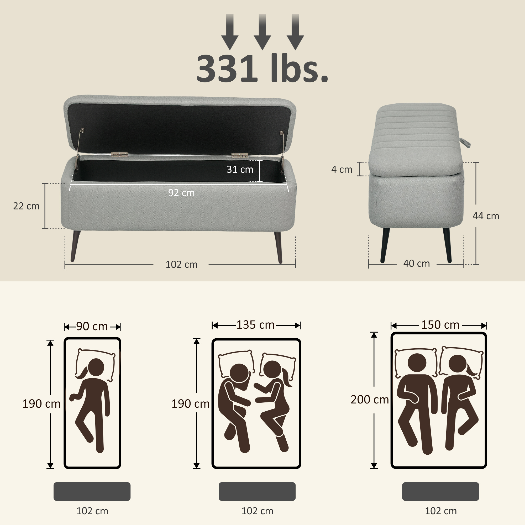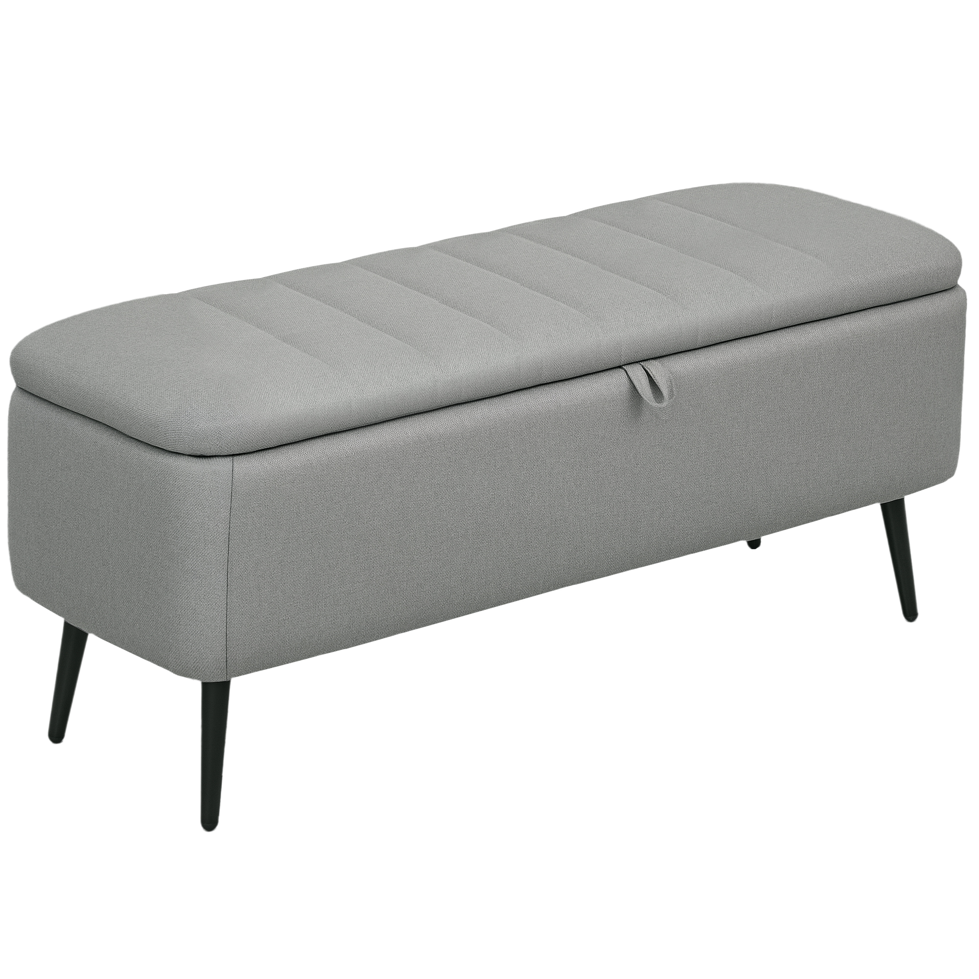 Style and storage? Do it in unison with this HOMCOM ottoman. Keeping it neutral with the light grey colour, this is a versatile piece which welcomes itself easily into many home style. It comes with a 92 x 31cm inner storage space - great for keeping small pieces together. The lid is padded so it works as an occasional seat. Complete with steel legs which support it, however you're using it.