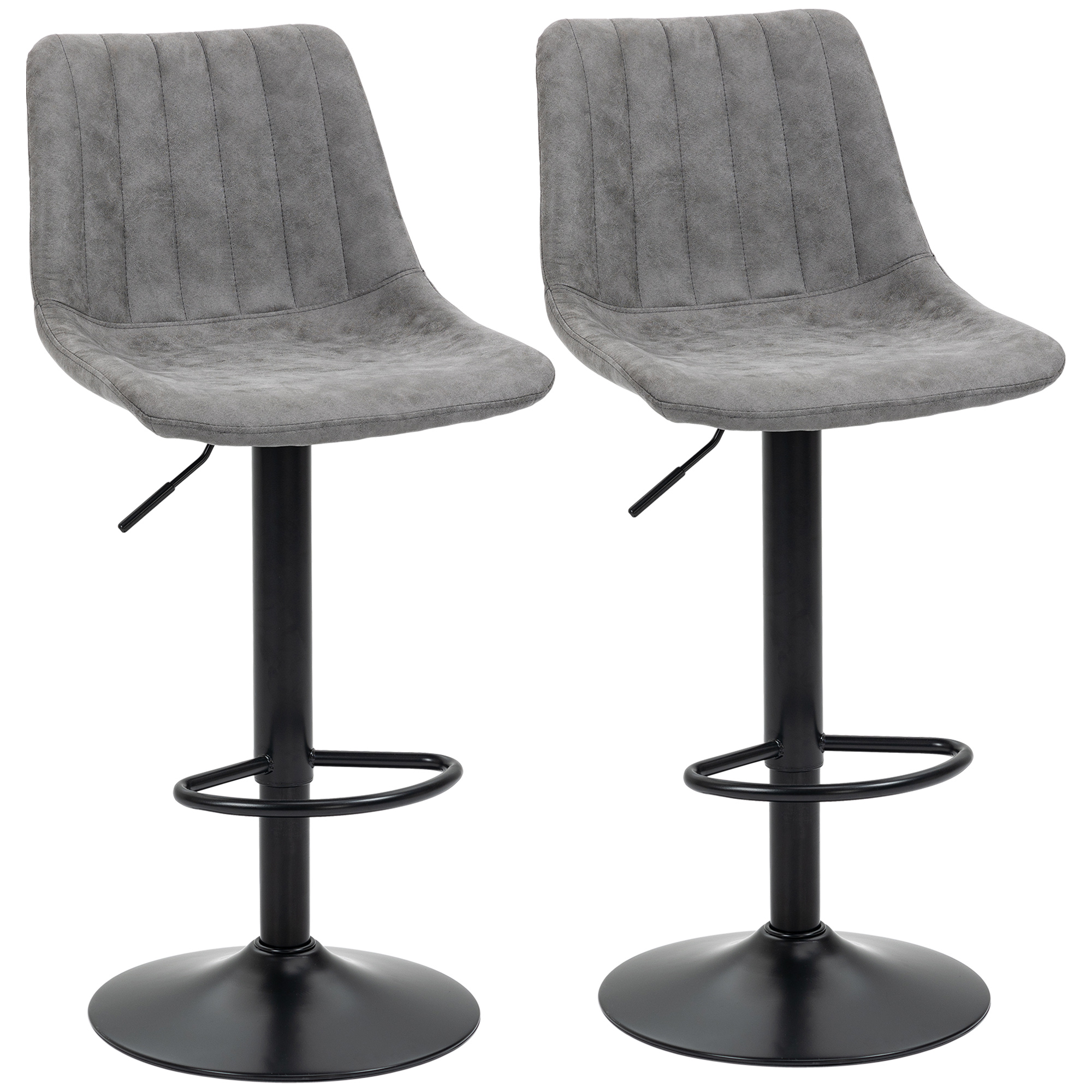 Both these HOMCOM breakfast bar stools are adjustable in height, with the 360° tub seat - easy and comfortable for your kitchen and beyond. The powder coated metal frame means a strong core., with a round base for balance; the rubber anti-slip ring gently protects the floor. Comes in a set of two kitchen stools for an easy matching look.