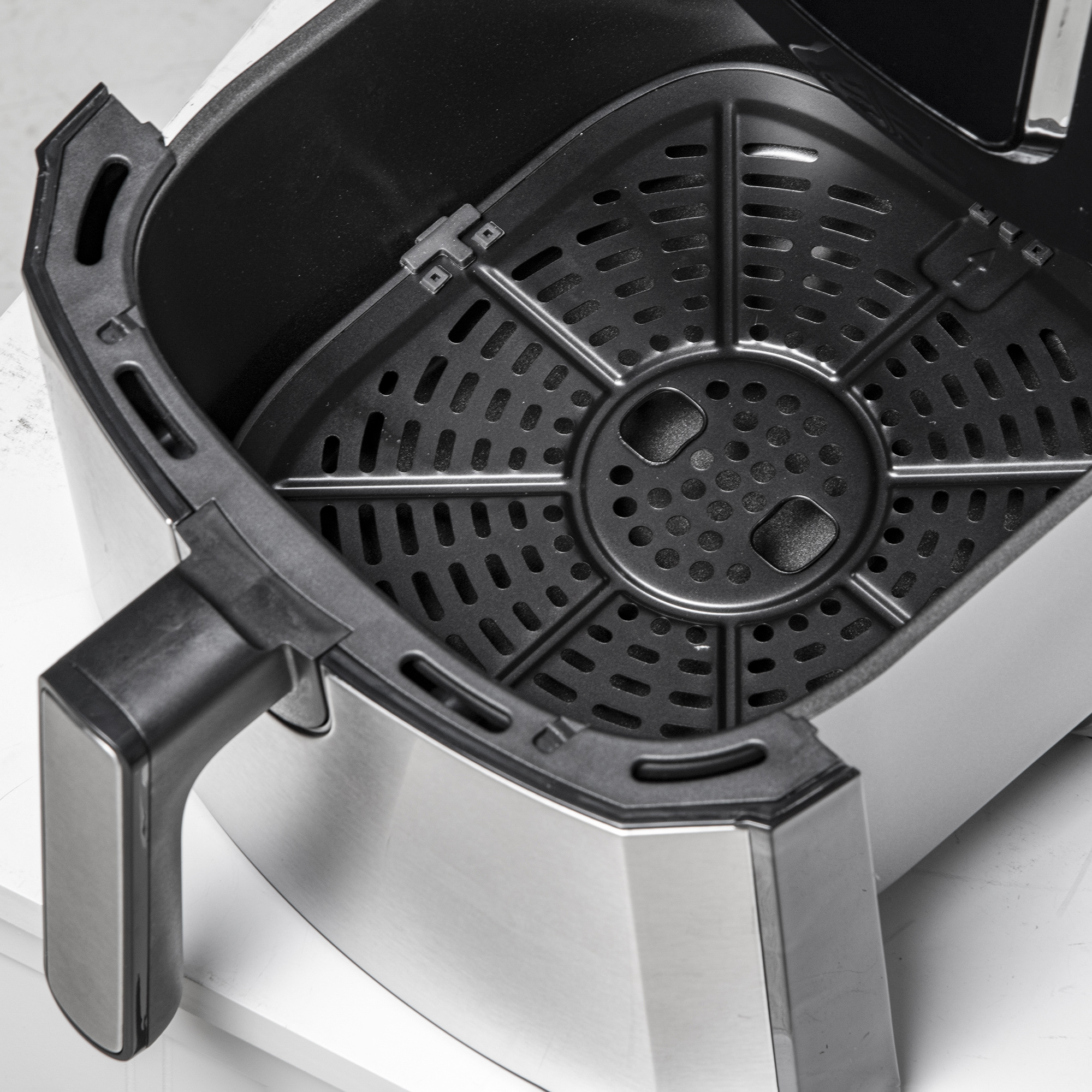 - 6.5 litre non-stick cooking basket. Removable basket and pan to clean easily