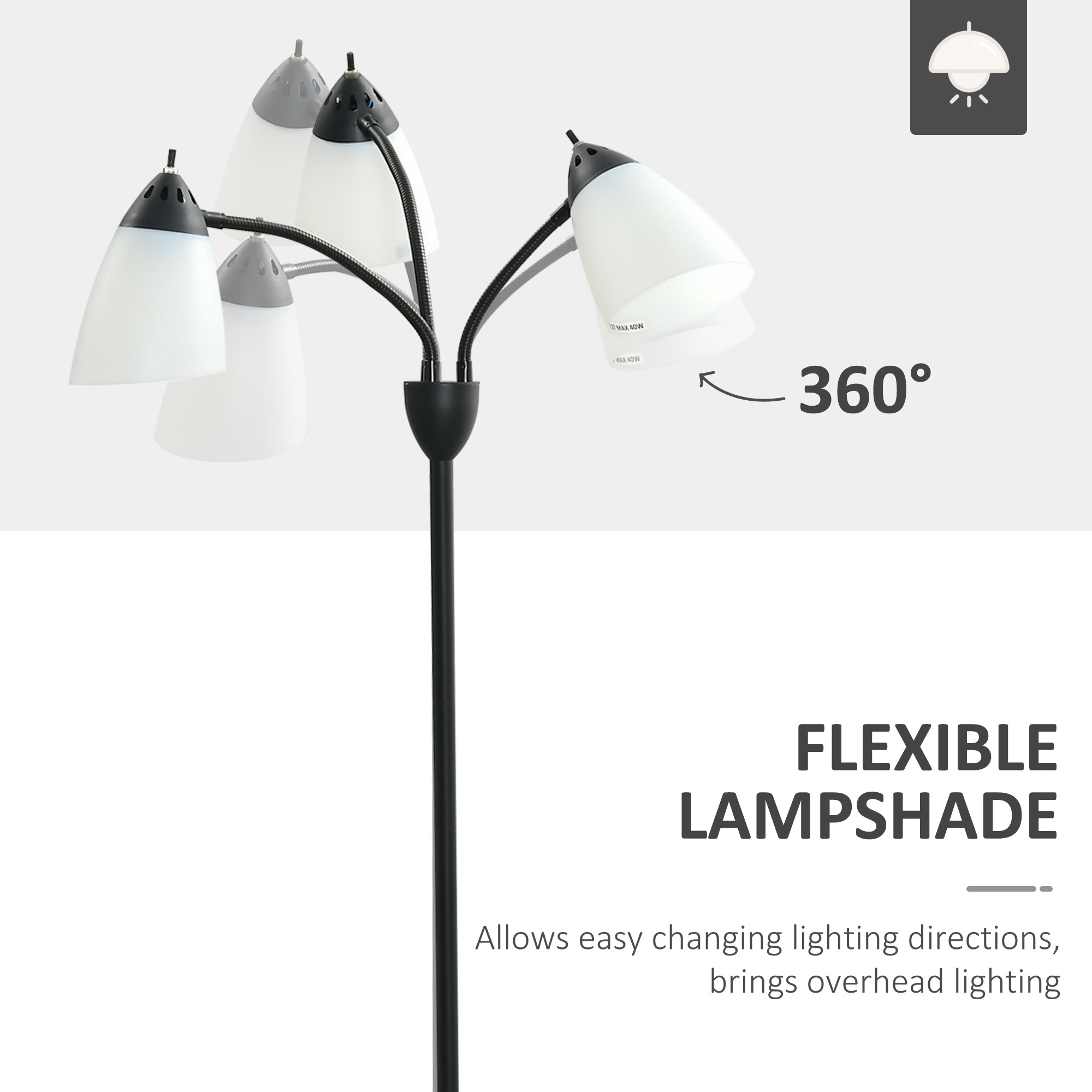 Create the atmosphere you want with this HOMCOM floor lamp. The tall tree design comes with three opaque shades - the fully flexible 360° movement means you can direct the light in any position you desire. Each light can also be turned on and off individually, so you can have your space either bright or dim. Made from steel, the structure is strong, with the heavy round base meaning this home light stands tall and proud, all day and night long.