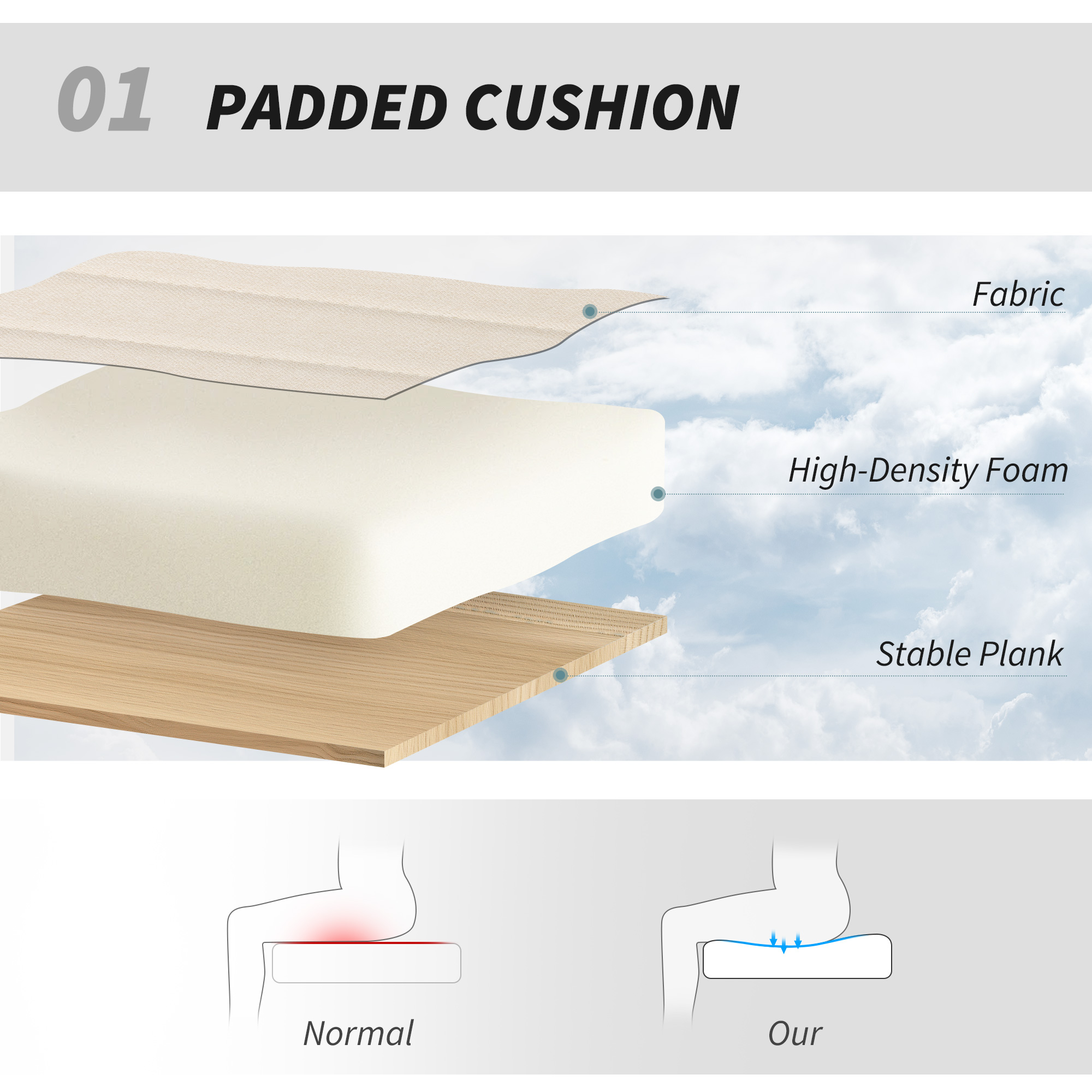 - High-density foam padding ensures long-lasting comfort