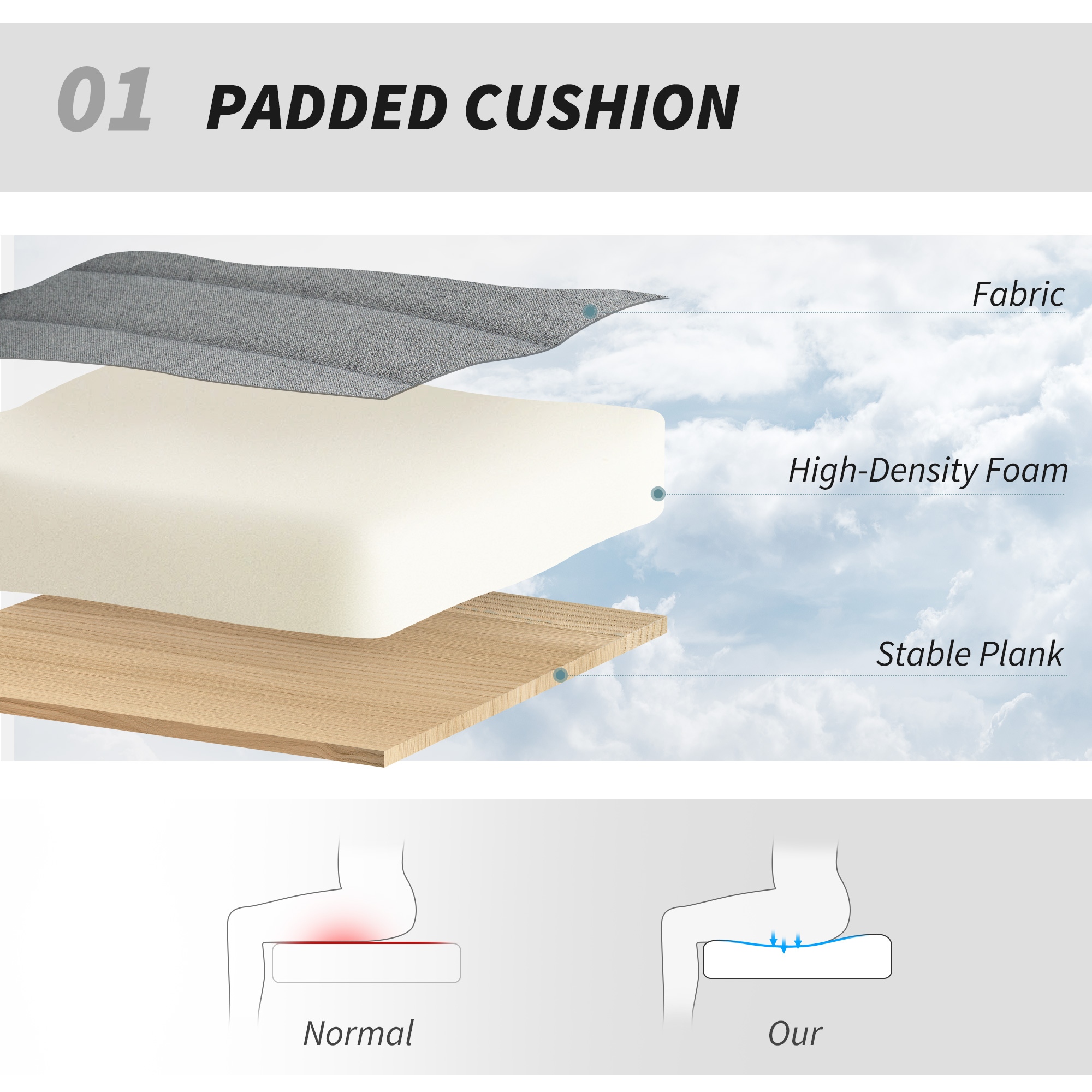 - High-density foam padding ensures long-lasting comfort