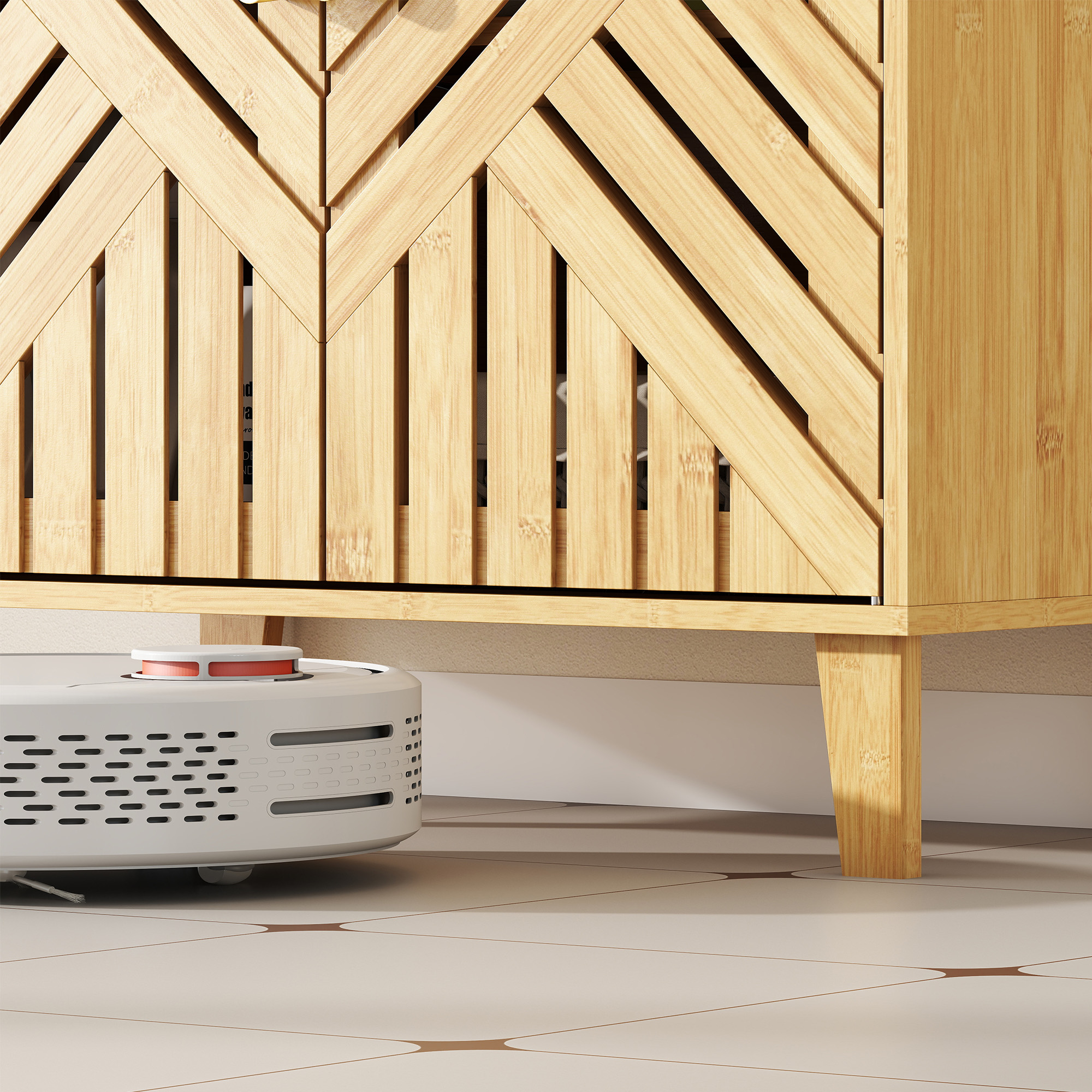 Transform your bathroom into a serene retreat with the HOMCOM under sink bathroom cabinet. Crafted from natural bamboo, its slatted design adds warmth and charm, creating a tranquil atmosphere. Designed to fit various wall-mounted sinks, the open back ensures effortless plumbing installation. With adjustable shelves, this under sink cabinet offers versatile storage for towels and toiletries, keeping your space organised and clutter-free.