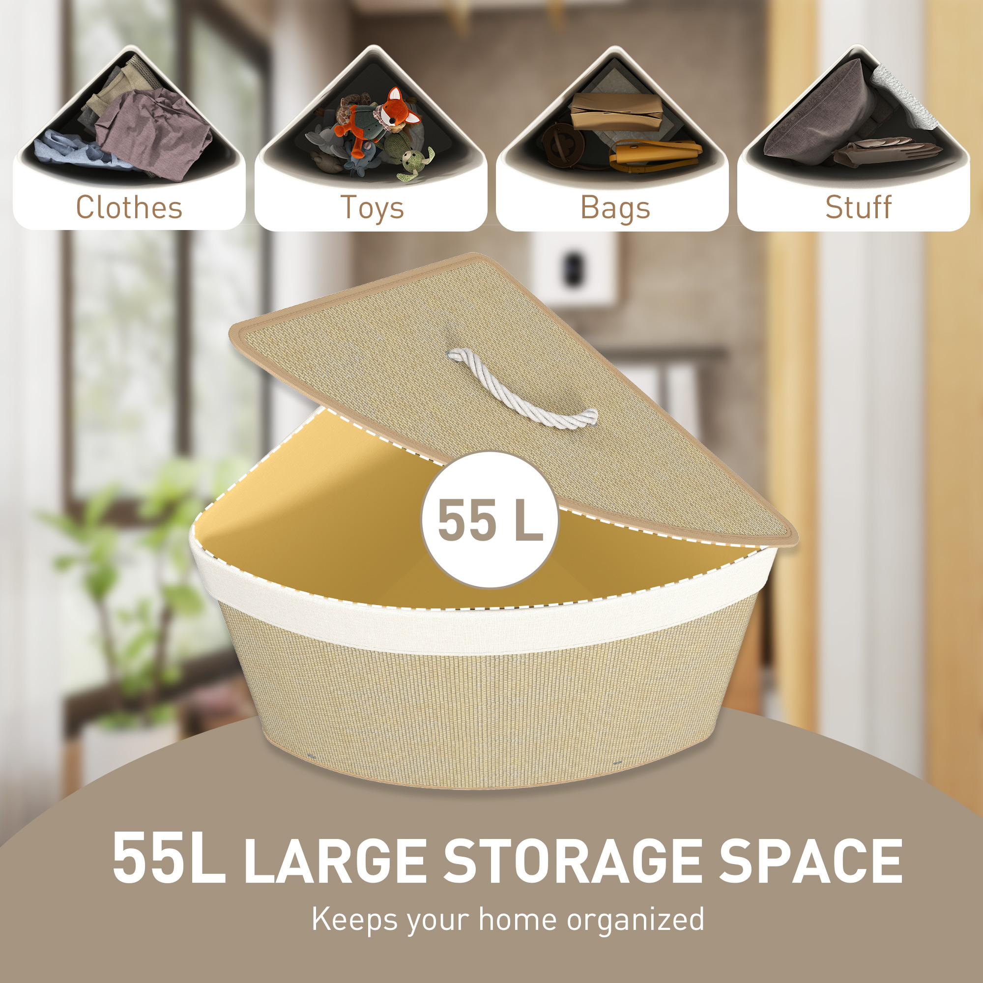 Meet the HOMCOM wicker laundry basket with lid, a stylish solution to keep your dirty clothes out of sight! With a generous 55L capacity and a handy removable lid, this slim laundry basket fits seamlessly into any corner. The detachable fabric bag is a breeze to wash, making laundry day less of a chore. Its chic bamboo weave adds a touch of elegance to your home.