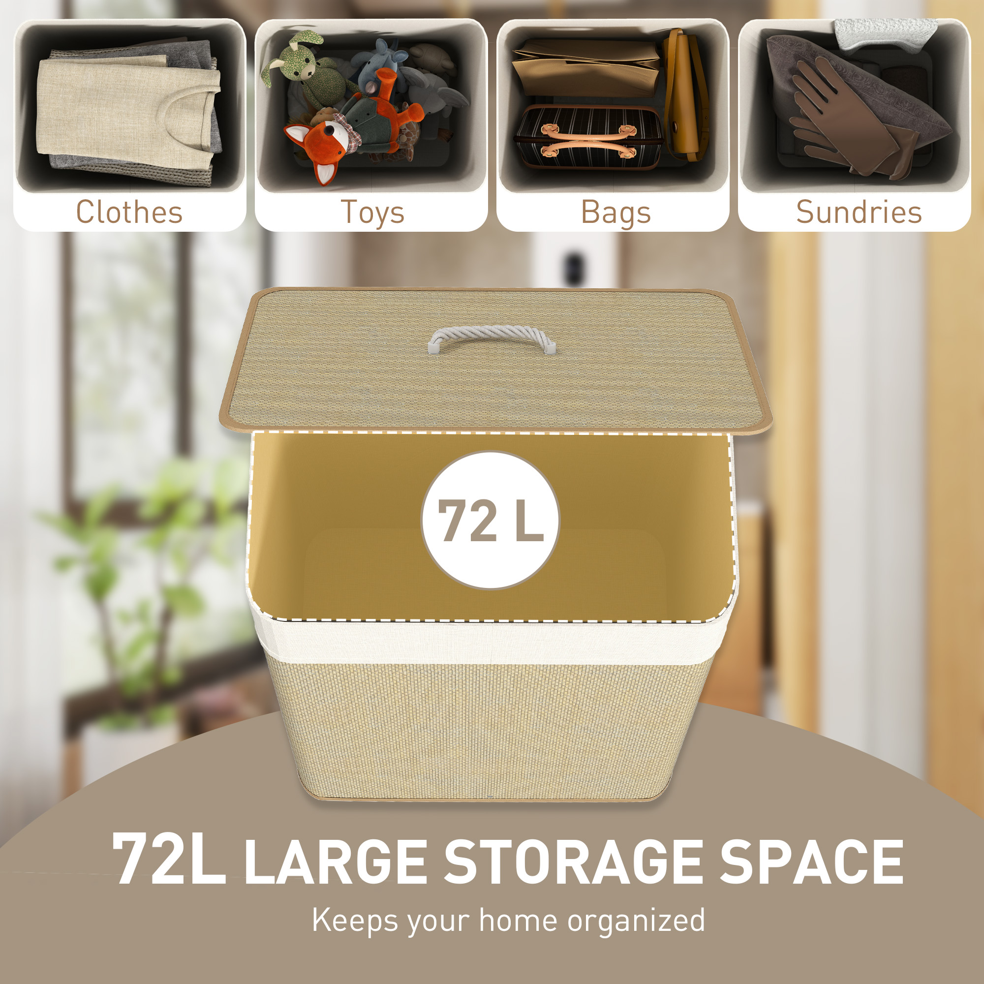 Meet the HOMCOM wicker laundry basket with lid—a stylish and practical way to keep dirty clothes out of sight! With a generous 72L capacity, a removable lid for easy access and convenient side handles for effortless carrying, the wash basket fits seamlessly into any space. The detachable fabric bag is easy to wash, making laundry day a breeze, while the elegant bamboo weave adds a refined touch to your home.