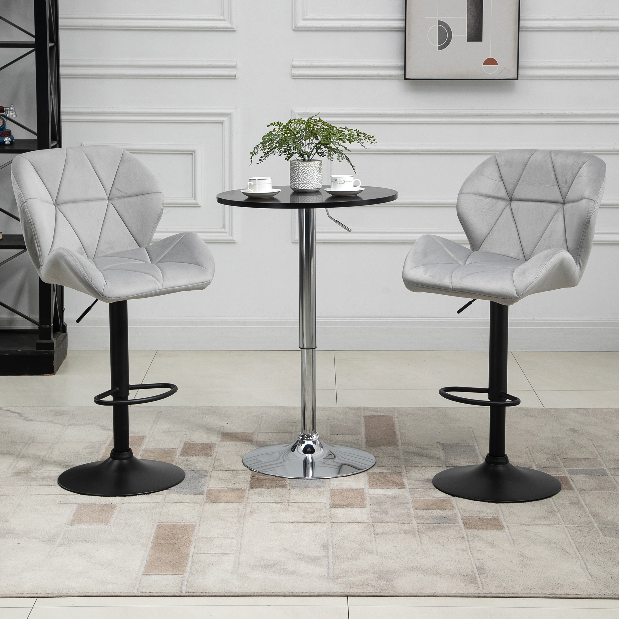 Dreaming of a more luxurious home? Awaken to these two bar stools from HOMCOM. Design blends moulded seats with velvet-feel upholstery for sophistication. There's triangle-panelling all over for a slightly retro feel and sponge padding for comfort. Each seat is fixed firmly onto a round metal base to keep the balance. It's finished with a low bar to rest your legs and feet. Whether dining higher or lower, these breakfast bar stools will provide the glamorous backdrop you've been yearning for.