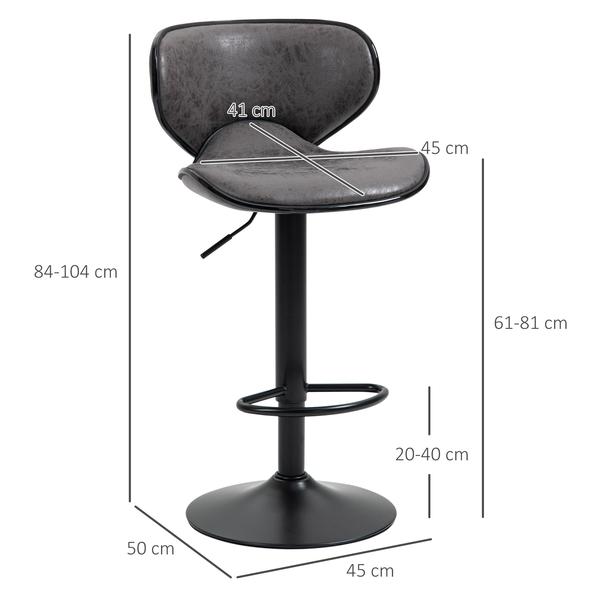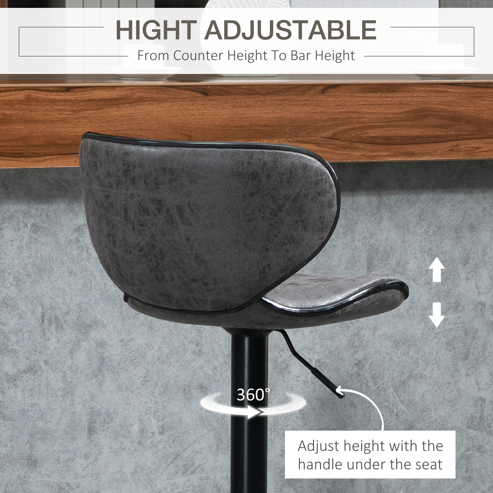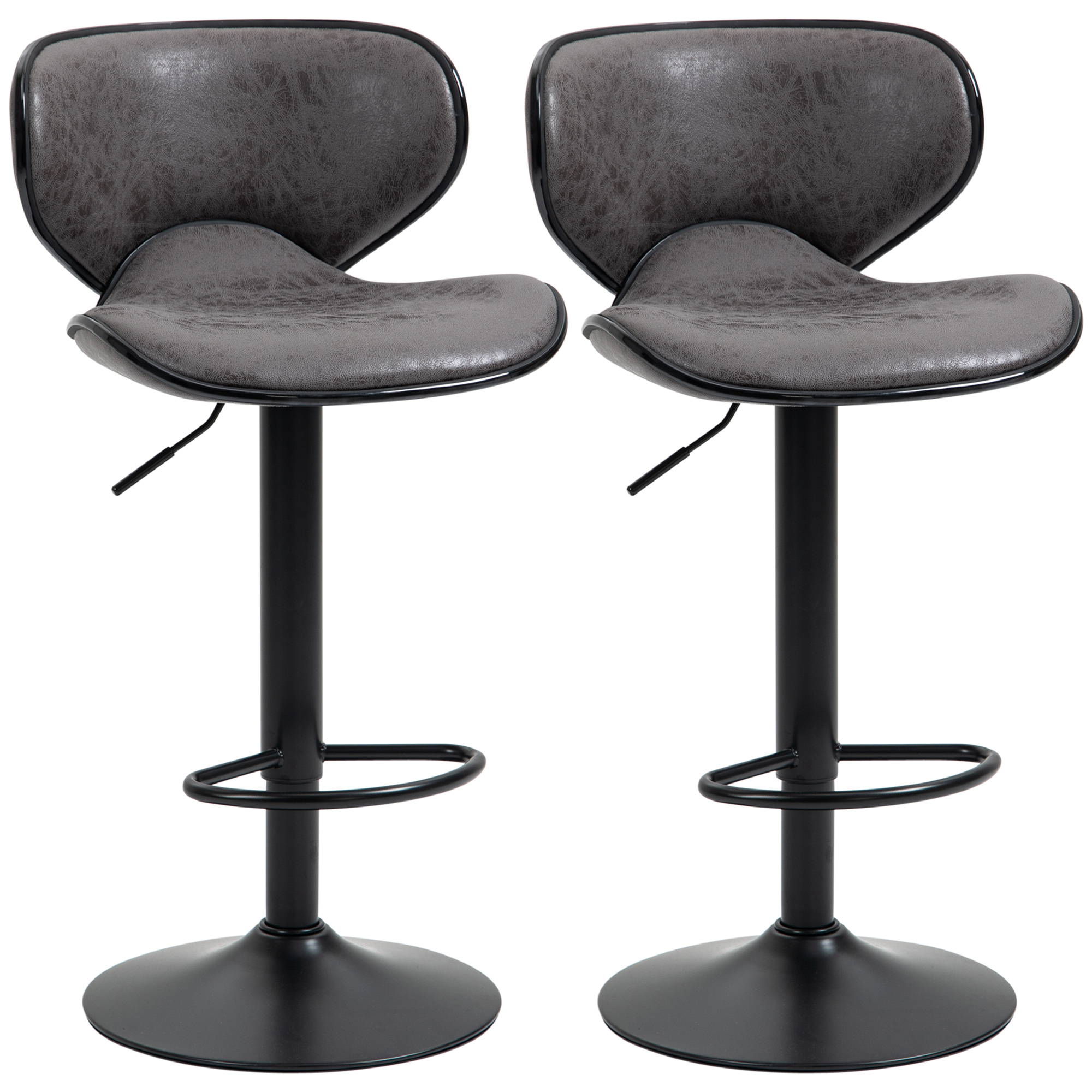 This is home comfort done the modern HOMCOM way. Bring these two bar stools into the home for something a little bit different to enjoy the every day. Cut to a unique and ultra-curved style, both seats are filled with soft sponge for you to sink yourself into, keeping you comfortable for as long as you sit. The arched back and moulded seat supports your body's shape too. Both barstools are fitted on a height-adjustable metal frame with a large round base to keep you balanced.