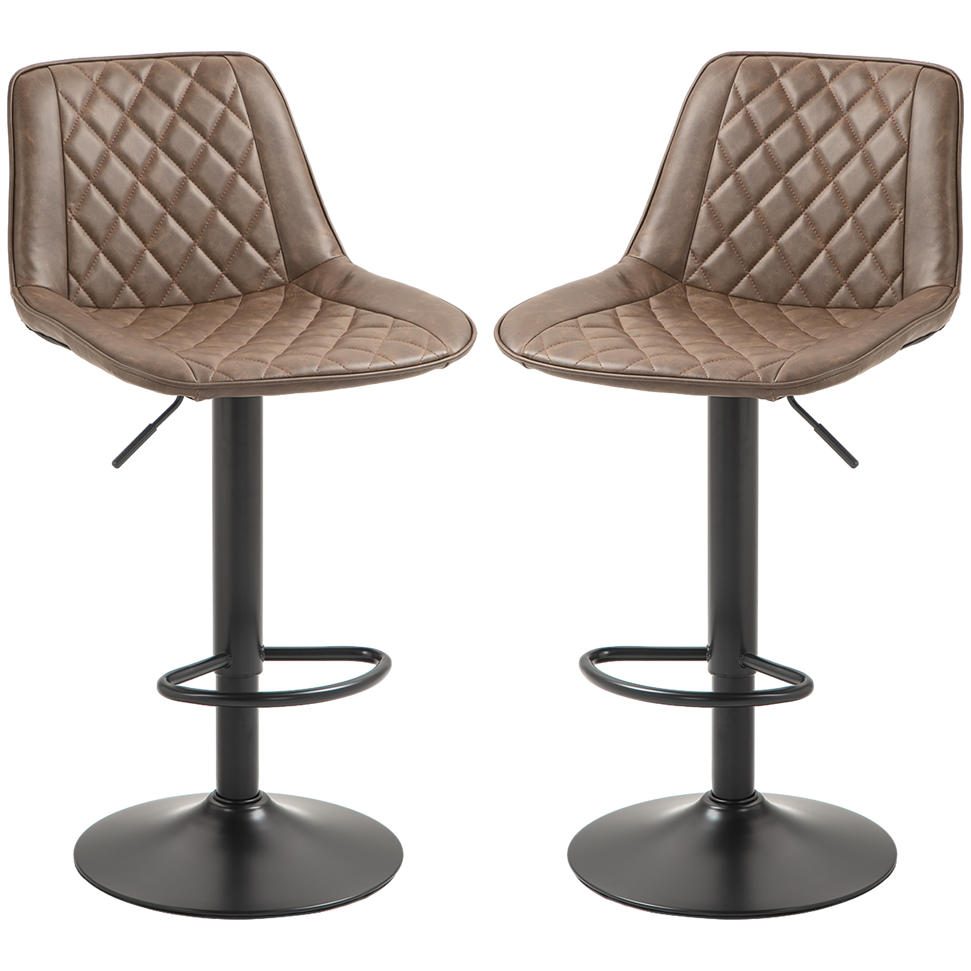 A stylish look for your kitchen dining spots with these HOMCOM bar stools with backs. Faux leather upholstery for a beautiful look. Padded seat and high back to keep you comfortable and supported. A metal base for strength and keeping you supported, the height is adjustable between 59-79cm: set to a level best for you. Completed with a lower footrest.