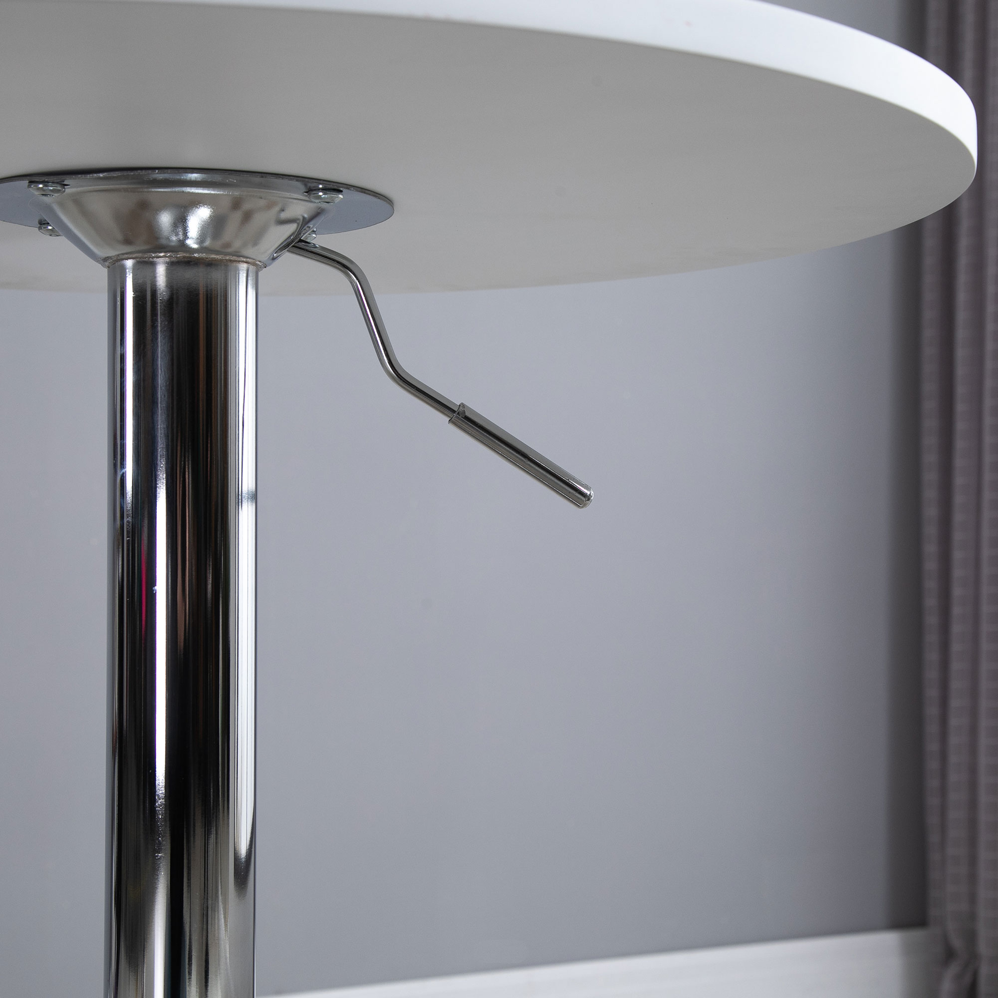 Dine and drink at plenty of different heights - grab this adjustable bar table from HOMCOM. The frame is made from metal so it's solid and sturdy, crafted with a large round base which keeps it balanced. The polished finish is beautiful and works with the clean white colour of the table top. The top is large and round to offer plenty of holding space. Height is adjustable between 69cm and 93cm, easily adjusts with the handle.