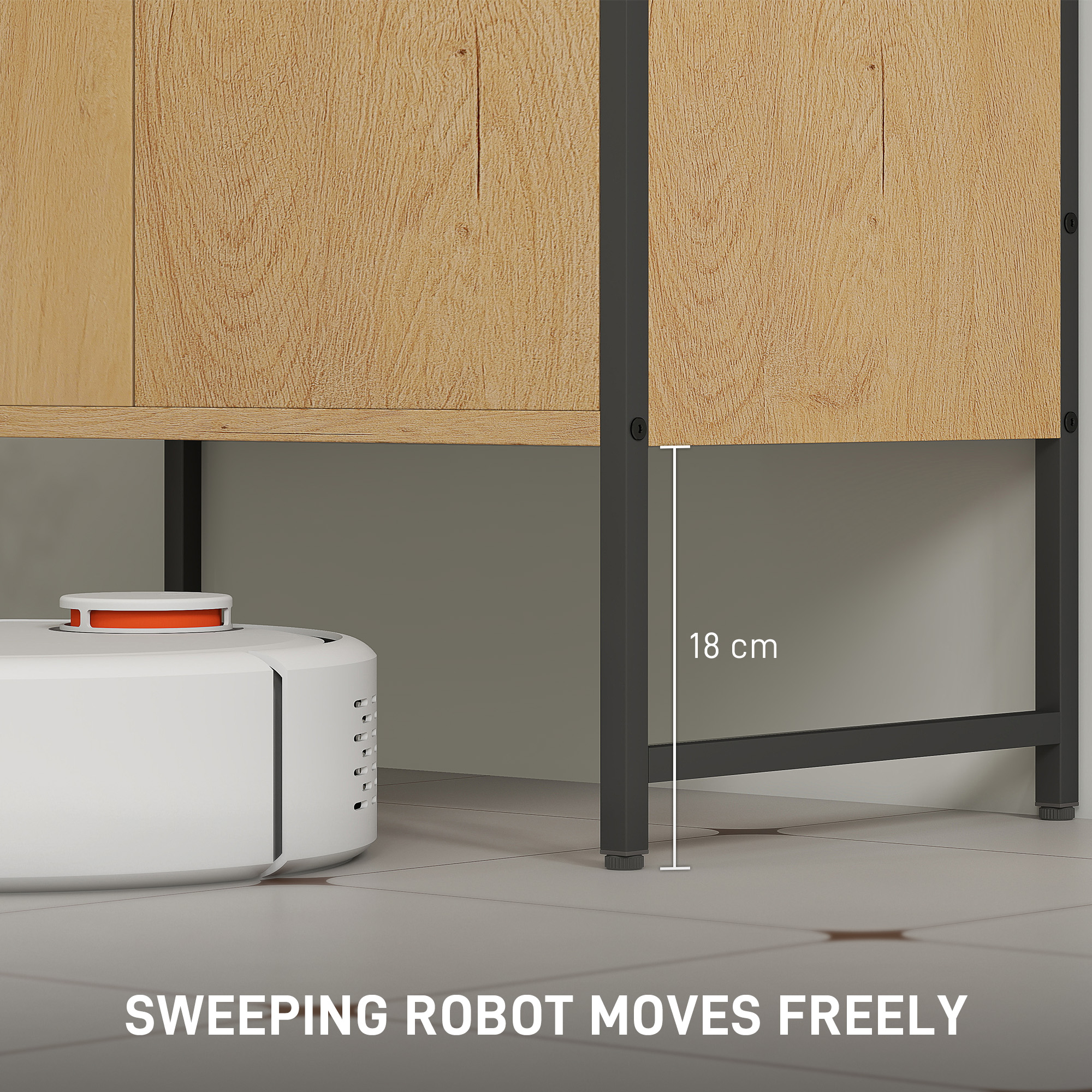 - 18 cm clearance allows sweeping robot for easy cleaning underneath