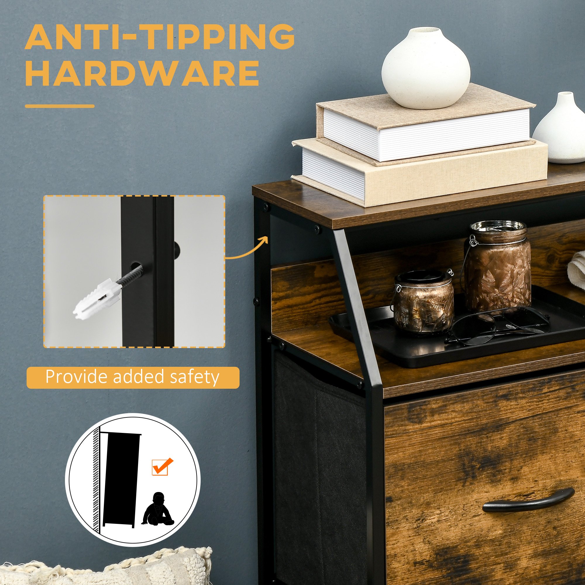 Quick additional storage is always needed. Get yourself clutter-free with HOMCOM bedroom drawers. The removable fabric drawers with rustic colour MDF panels delivers a casual look to your living space. At the same time, the dresser with open shelf and concealed storage provide a versatile storage solution. The frame, made from steel, ensures a sturdy core structure, with adjustable feet to keep the balance.