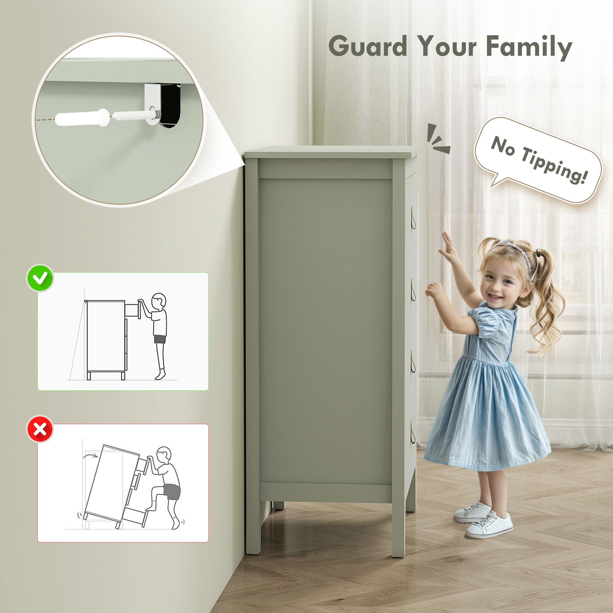 - Includes anti-tip device for added safety, great for families