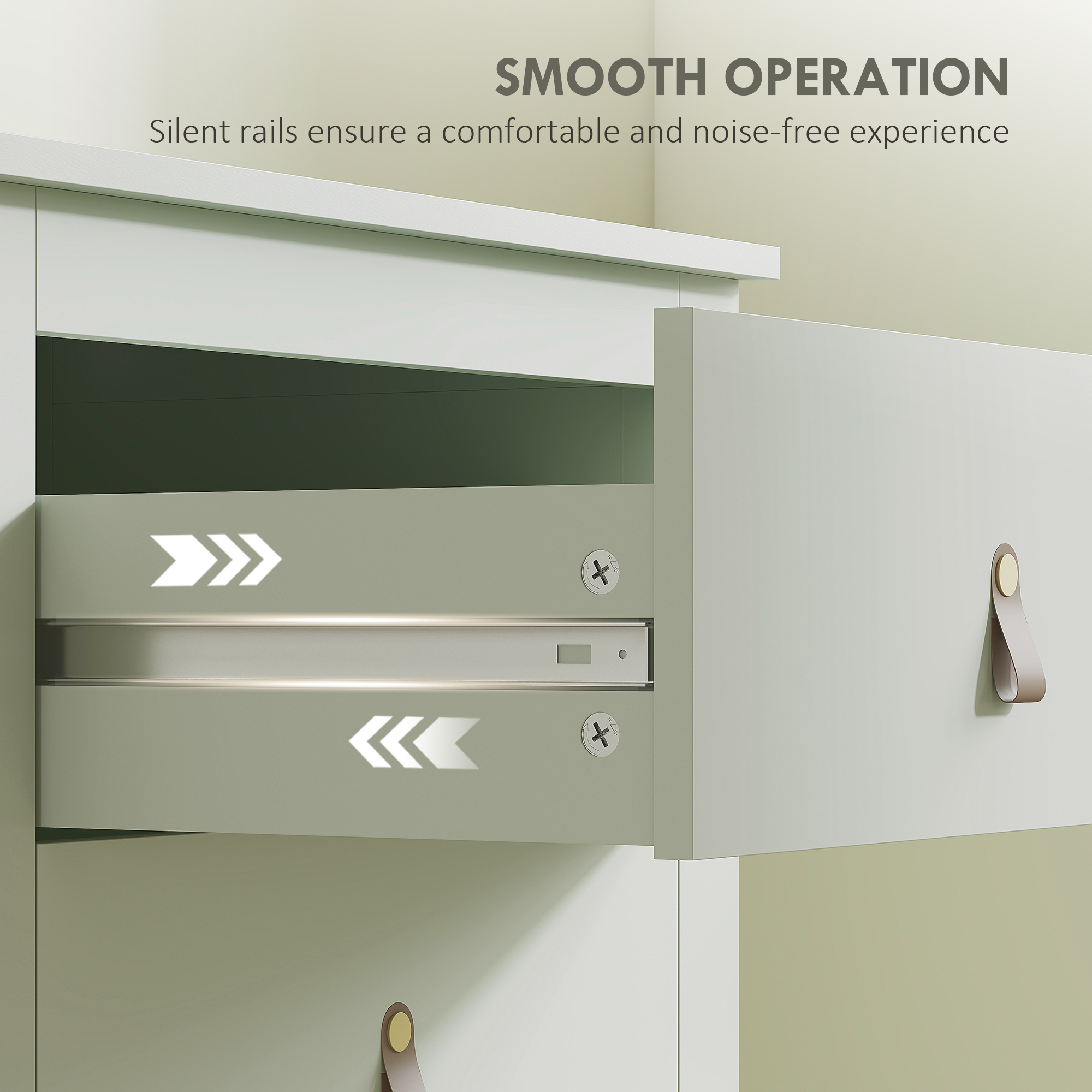 Experience the robust durability of our drawer chest, crafted from particle board meeting E1 standards for reliability and safety. Its modern style and elegant design seamlessly enhance your home decor, while offering spacious storage drawers to keep your belongings organised. Enjoy the quiet glide of the drawers, ensuring a smooth and comfortable user experience, making it a great addition to any bedroom.