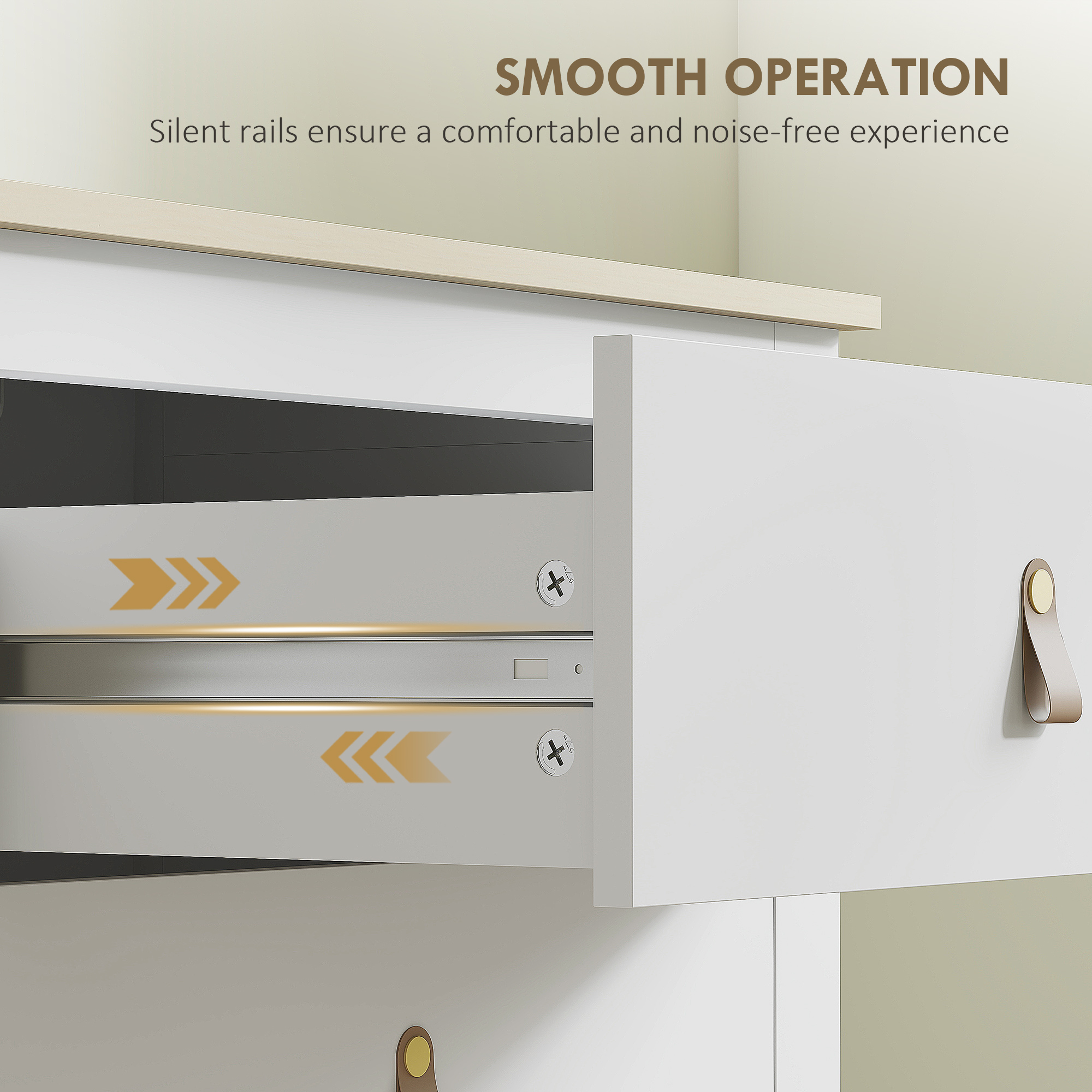 Experience the robust durability of our drawer chest, crafted from particle board meeting E1 standards for reliability and safety. Its modern style and elegant design seamlessly enhance your home decor, while offering spacious storage drawers to keep your belongings organised. Enjoy the quiet glide of the drawers, ensuring a smooth and comfortable user experience, making it a great addition to any bedroom.