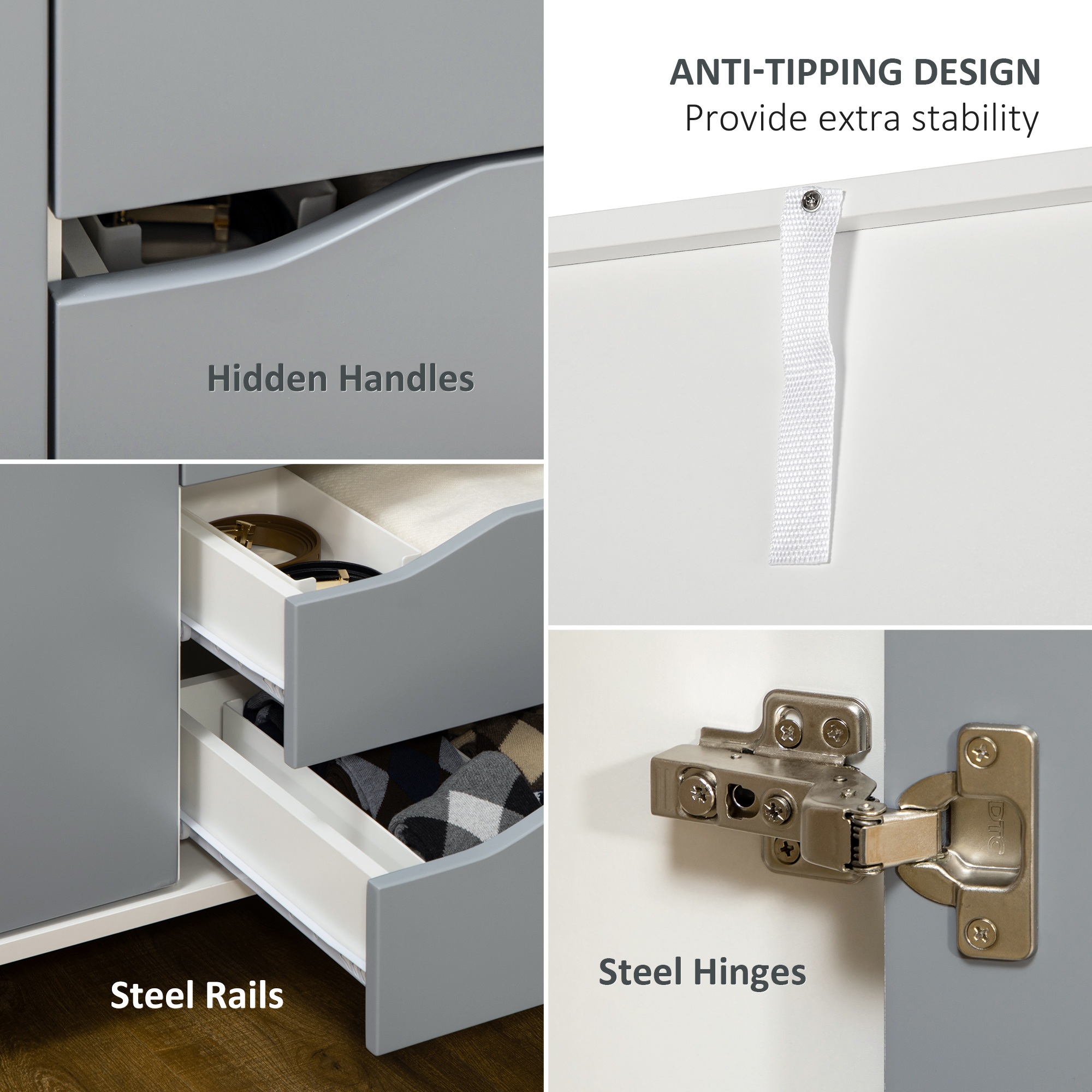 - Anti-tipping design keeps dresser and wardrobe stable and safety