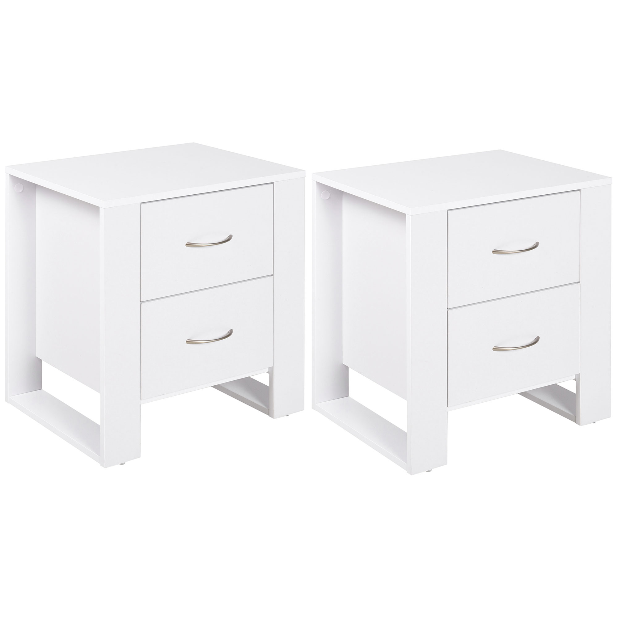 With its modern boxy shape, this end table is sure to bring in a luxe feel into your nightly routine. Its formed of two drawers, giving you room for keeping what you need stored within easy reach. Using particle board for the structure, it is solid and tough to withstand everyday use, and is coated with melamine for light protection against marks and stains. The side legs, which take up a large proportion of the size, provide complete balance and stability to the storage organiser.