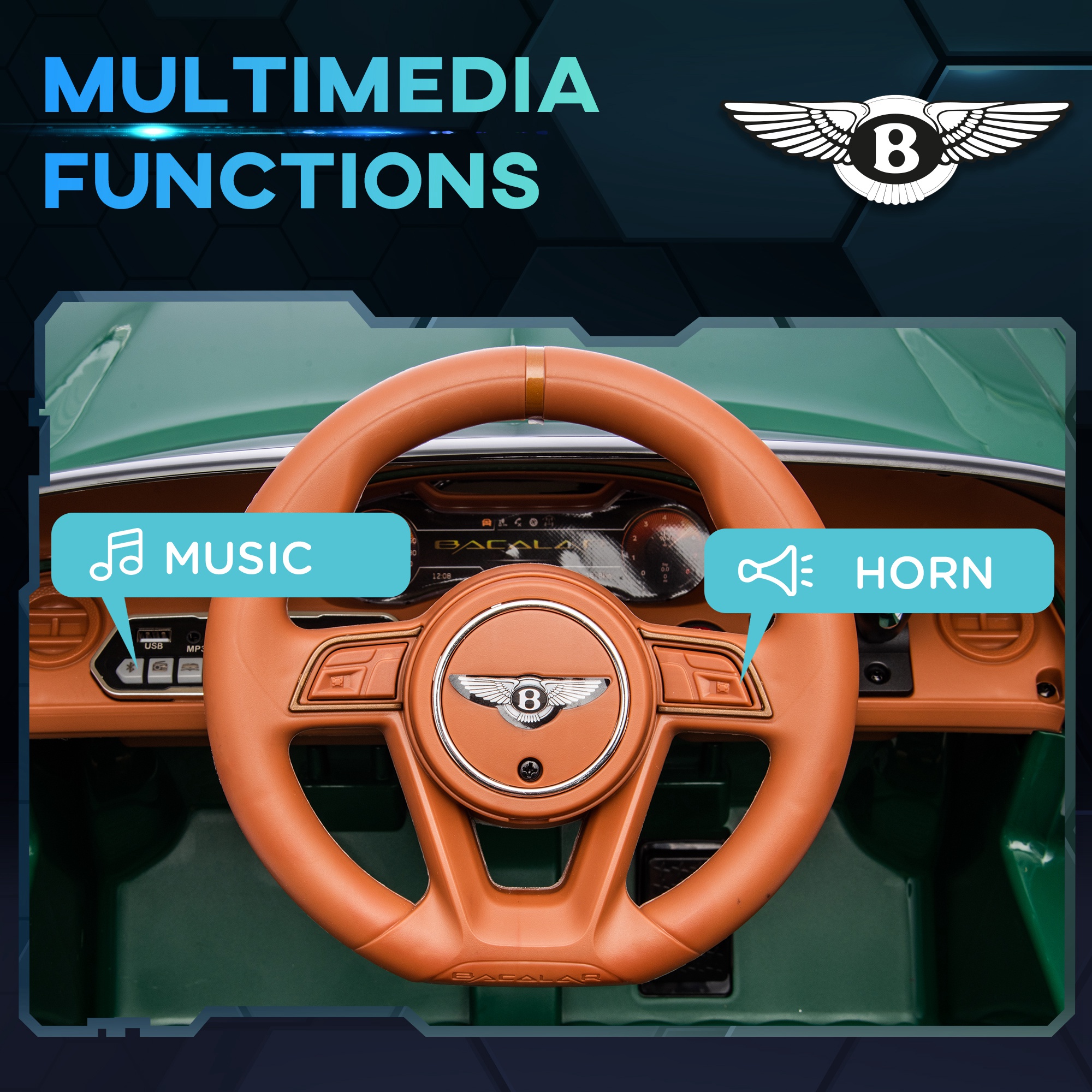 - Horn and music for added entertainment