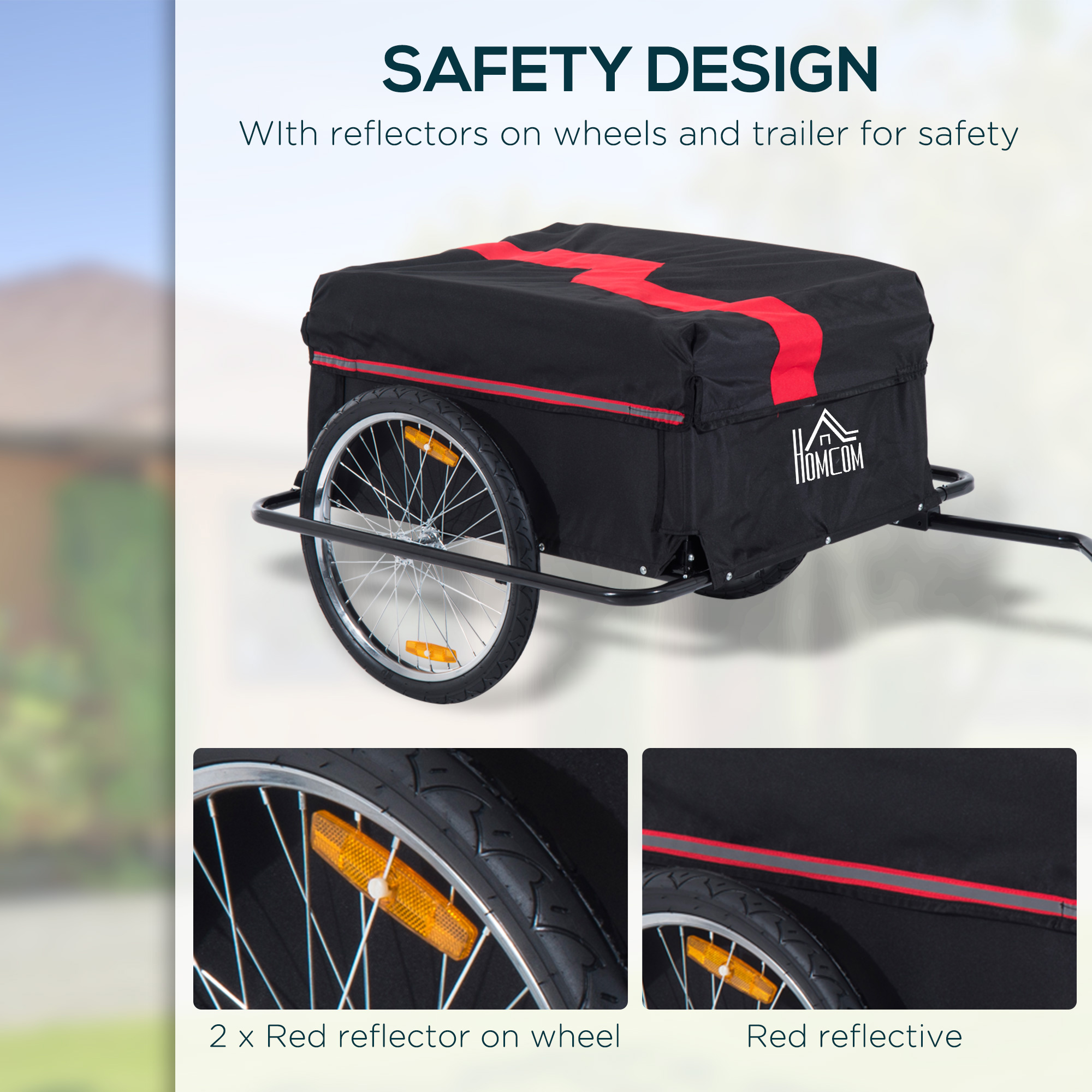 With this bicycle trailer from HOMCOM, the durable bag will keep all the contents safe and protected, with its bright yellow top making it visible to everyone. The bike trolley's solid steel base attaches to your bike quickly and gives the carry bag a balanced and safe platform. Features two wheels for smooth movement, with reflectors for safety in the dark. Both wheels are detachable so that you can easily pack and store this trailer. Attach our camping trailer to your bike back and go!