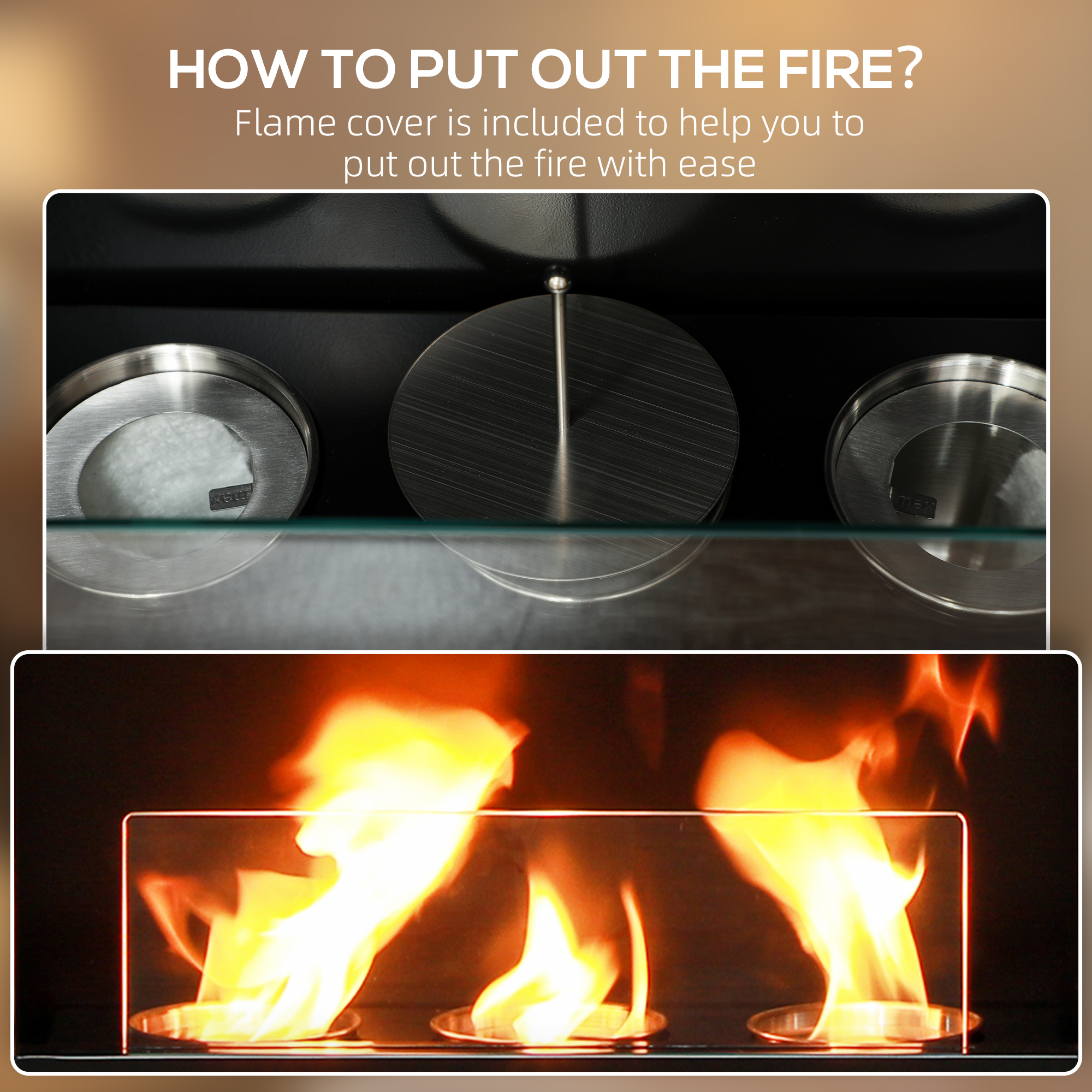- Powered by bioethanol: heat and flames, without smoke or odour
