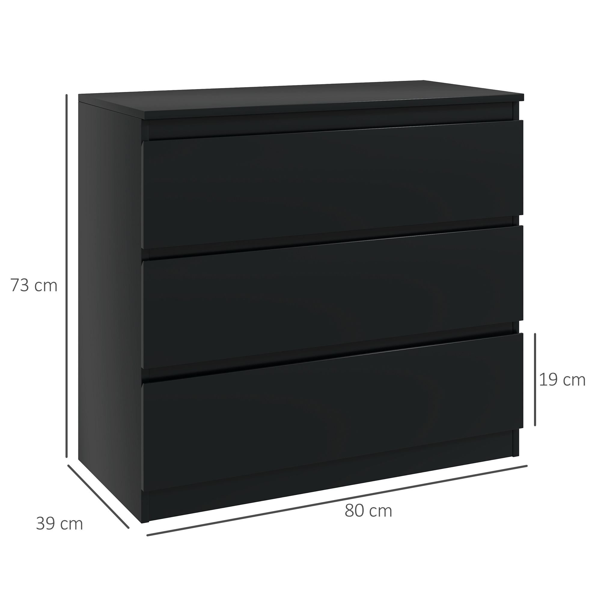 Add some style and organisation into the bedroom - do it with this HOMCOM dresser. Features three drawers for plenty of storage - keep tees, tops, trousers, underwear and more stored together. Made from particle board, it's stable enough for everyday use, with a flat top to offer display room. Comes with anti-tipping straps for safety.