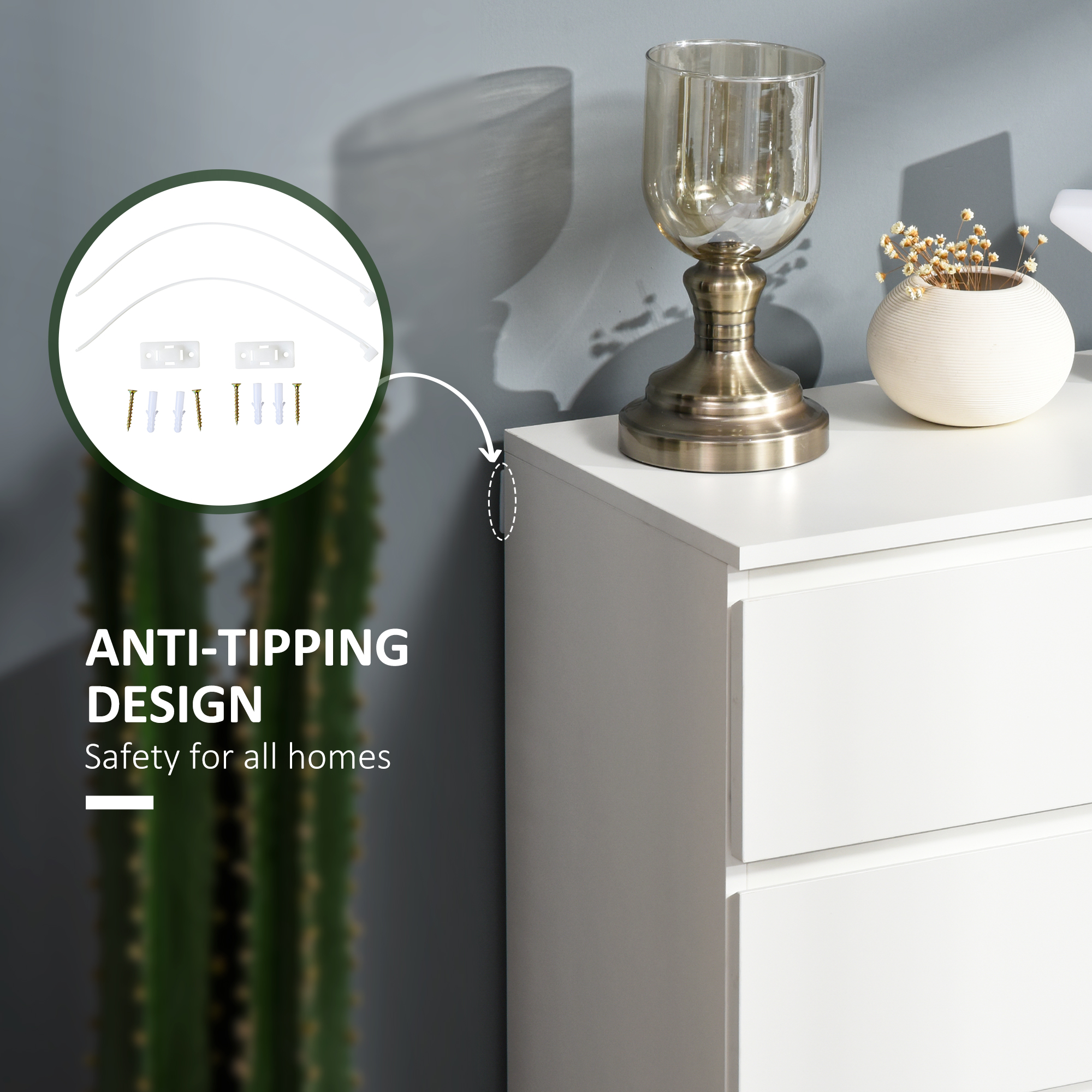 - Comes with anti-tipping straps for safety in homes with children and pets