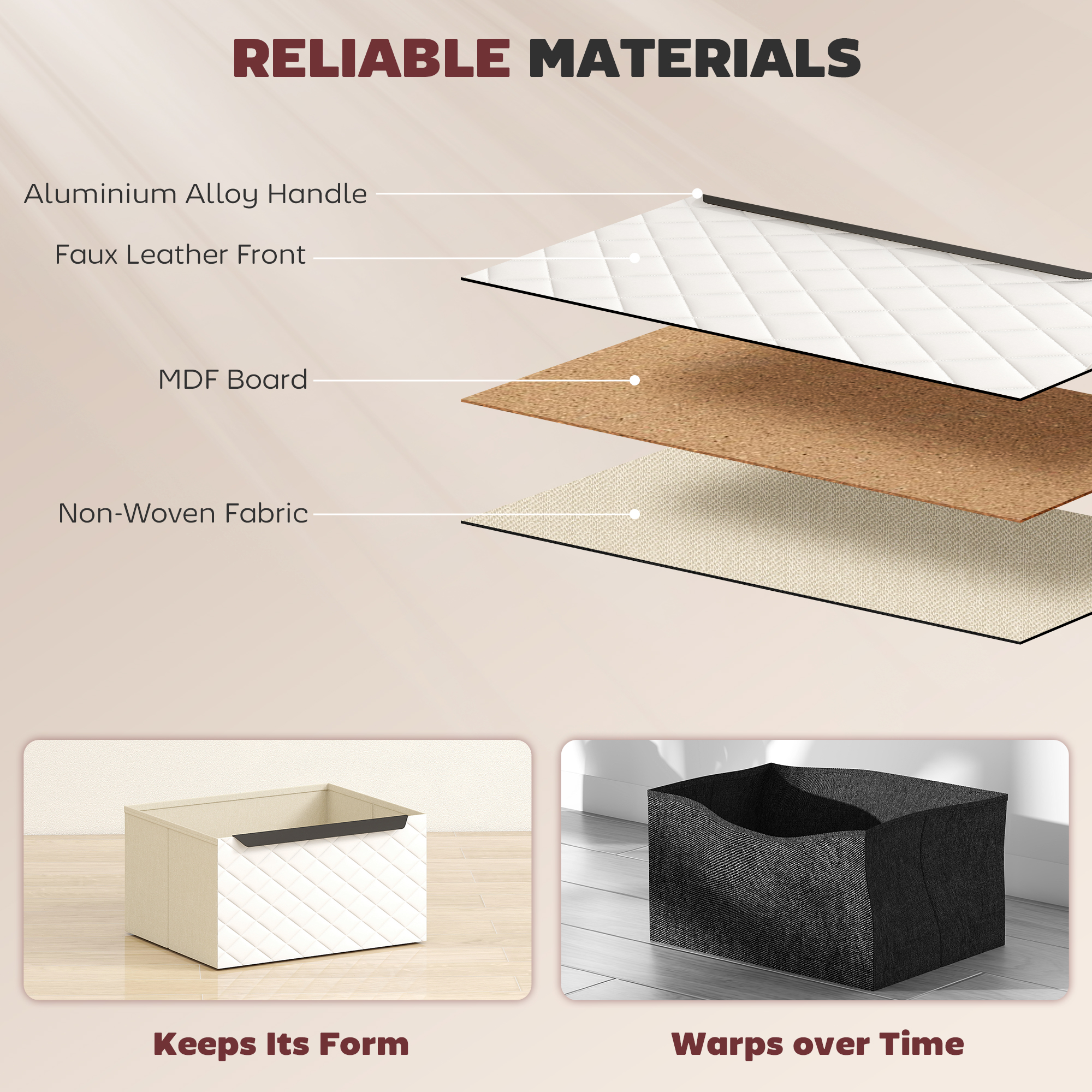 - Soft fabric drawers fitted with aluminium alloy handles for easy open/close