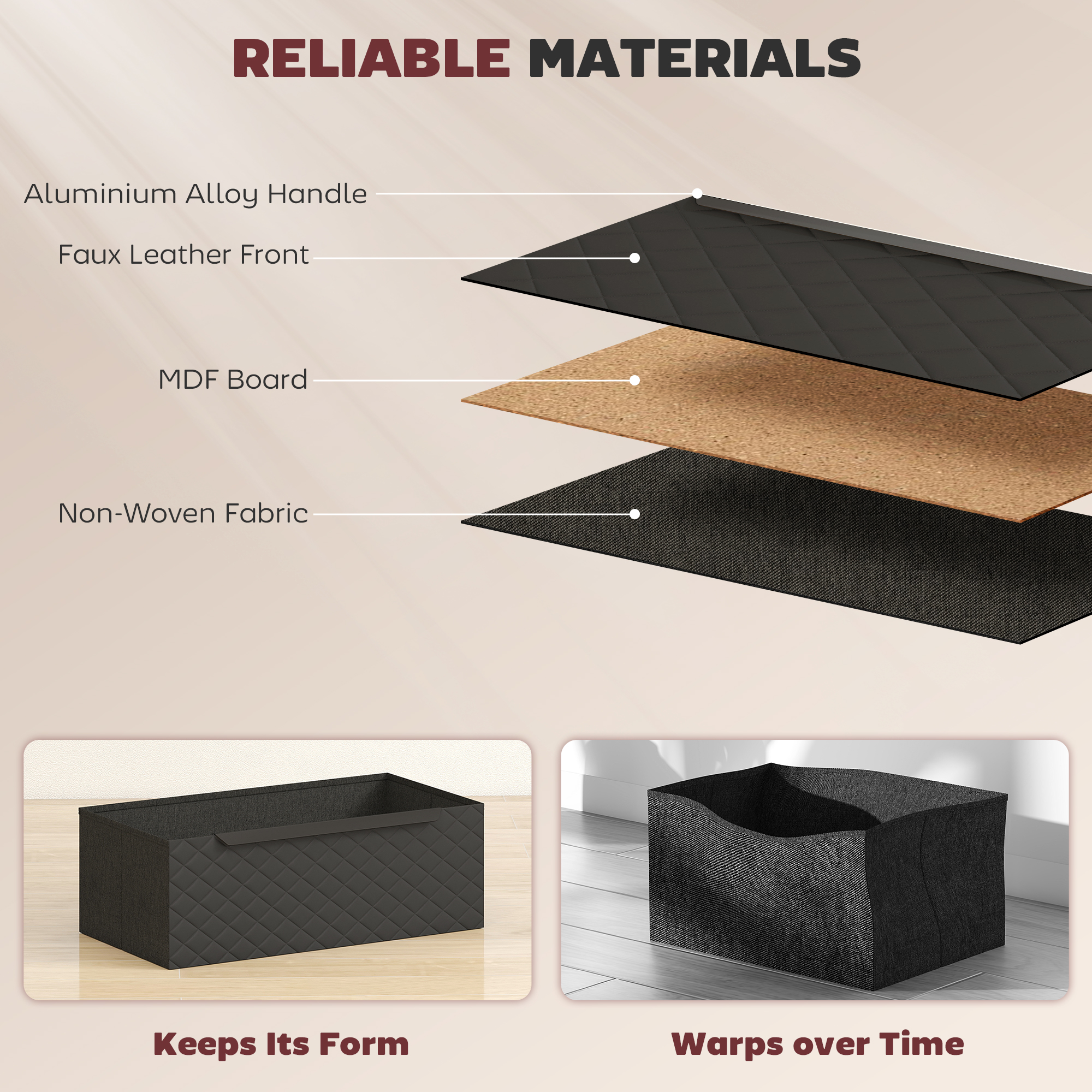 - Soft fabric drawers fitted with aluminium alloy handles for easy open/close