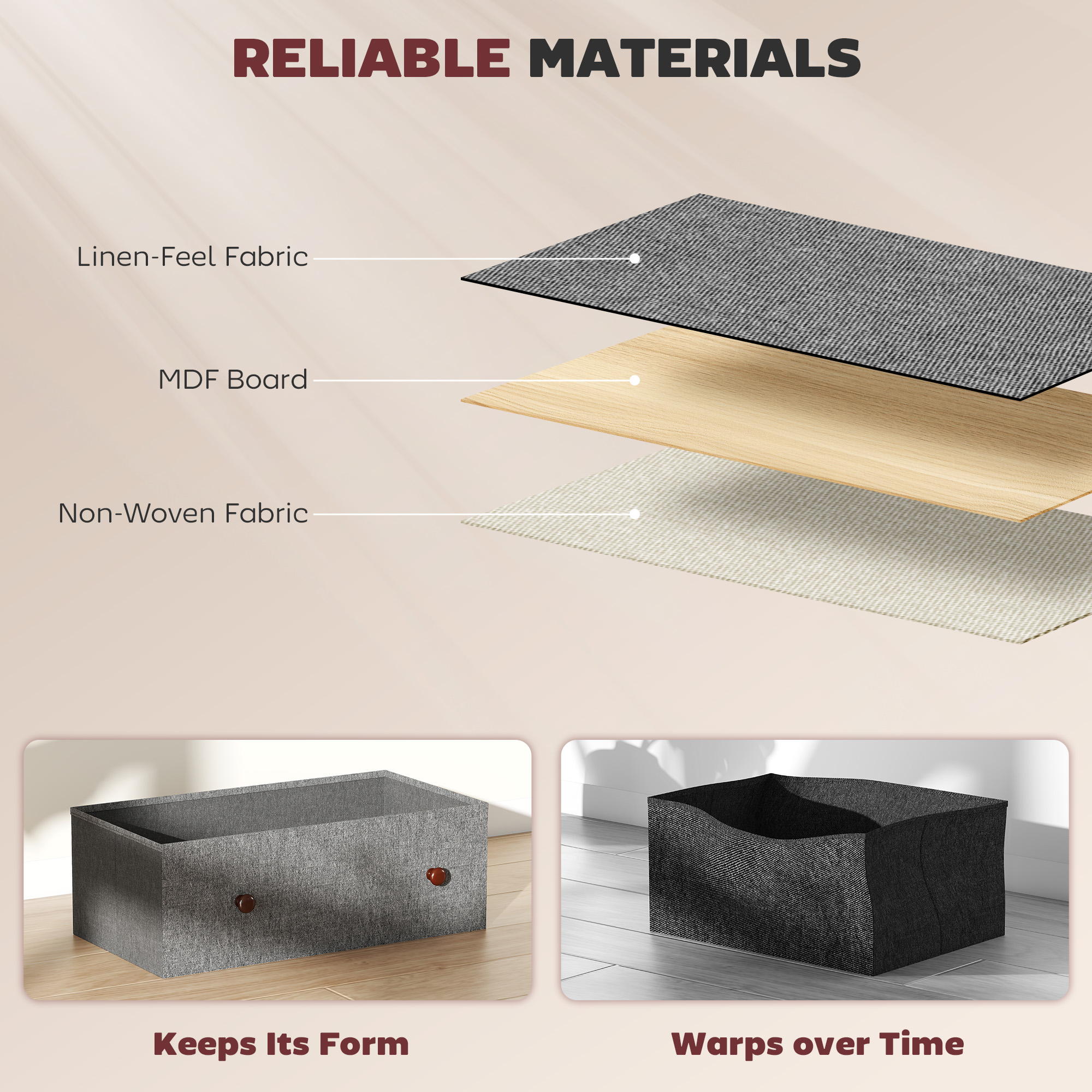 Bring style and order to your bedroom with this chest of drawers from HOMCOM. Featuring four foldable fabric drawers, it makes sorting clothes like T-shirts, jeans and socks simple. The two-tone design, grey and rustic brown wood-effect, brings a stylish look. The MDF and steel frame ensures stability, while anti-tip straps add safety. Transform your space into a serene haven with this HOMCOM dresser.