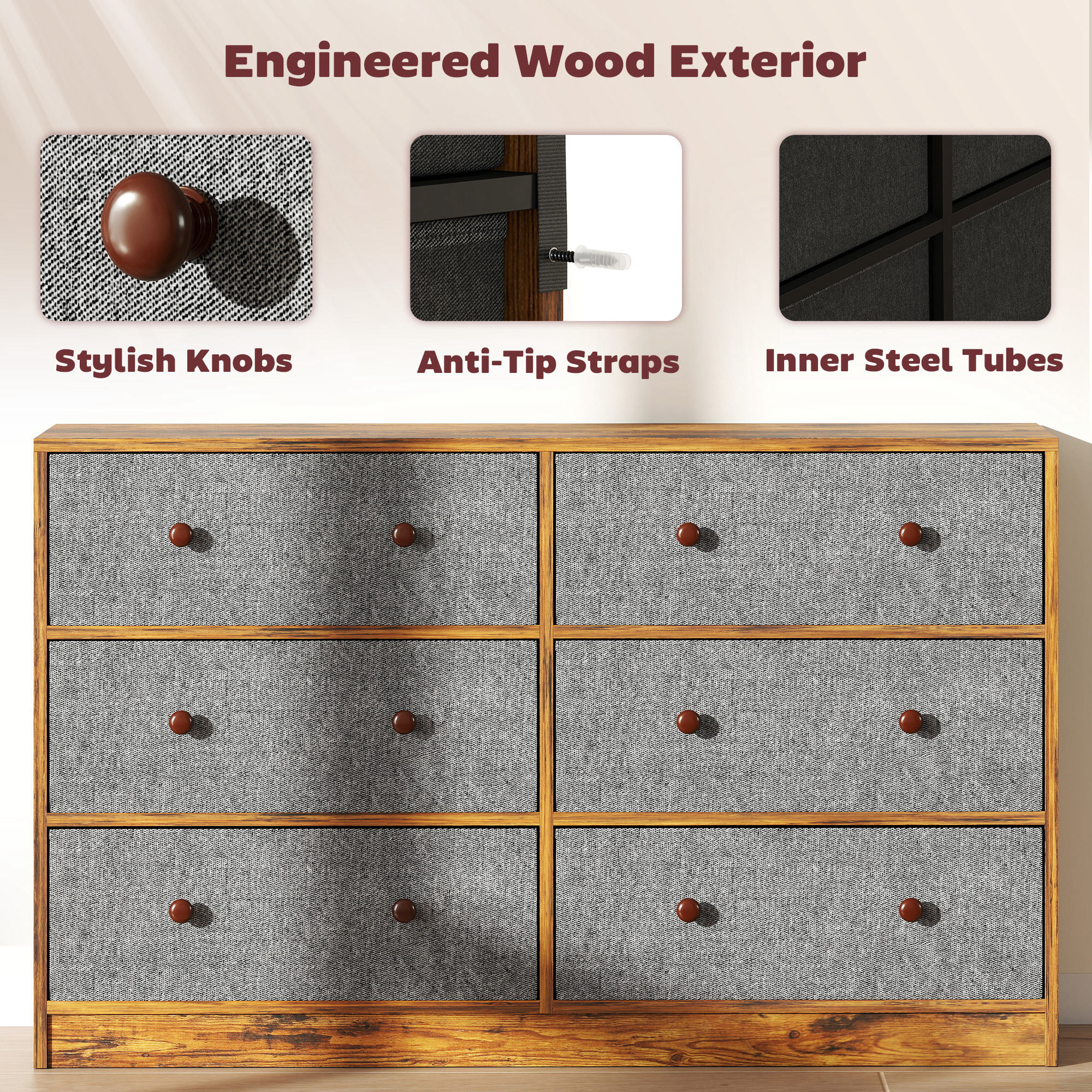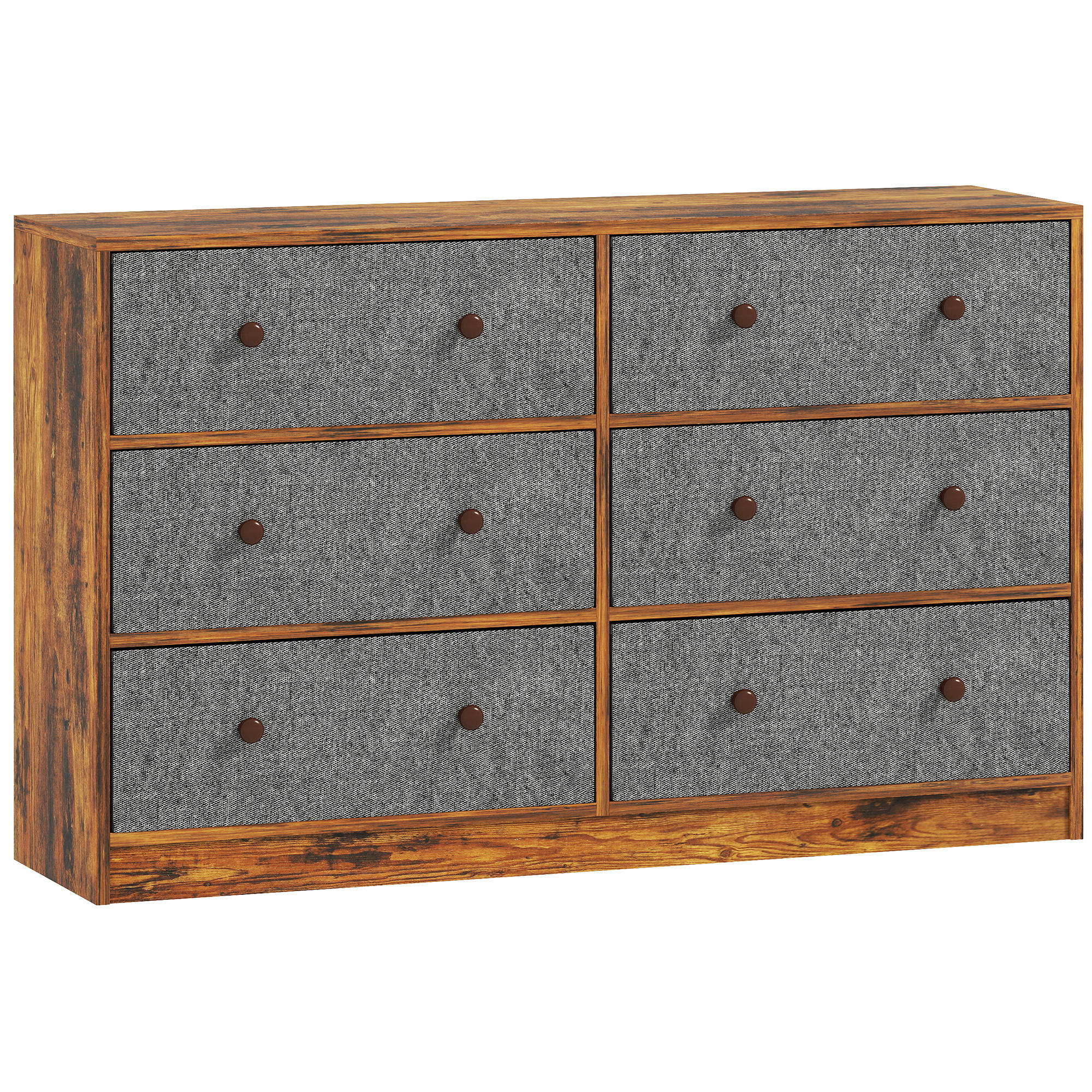 Bring style and order to your bedroom with this chest of drawers from HOMCOM. Featuring six foldable fabric drawers, it makes sorting clothes like T-shirts, jeans and socks simple. The two-tone design, grey and rustic brown wood-effect, brings a stylish look. The MDF and steel frame ensures stability, while anti-tip straps add safety. Transform your space into a serene haven with this HOMCOM dresser.